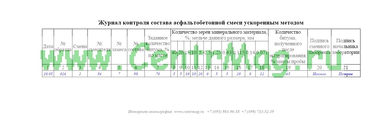 Графы журнала контроля состава асфальтобетонной смеси ускоренным методом (Форма 12):
