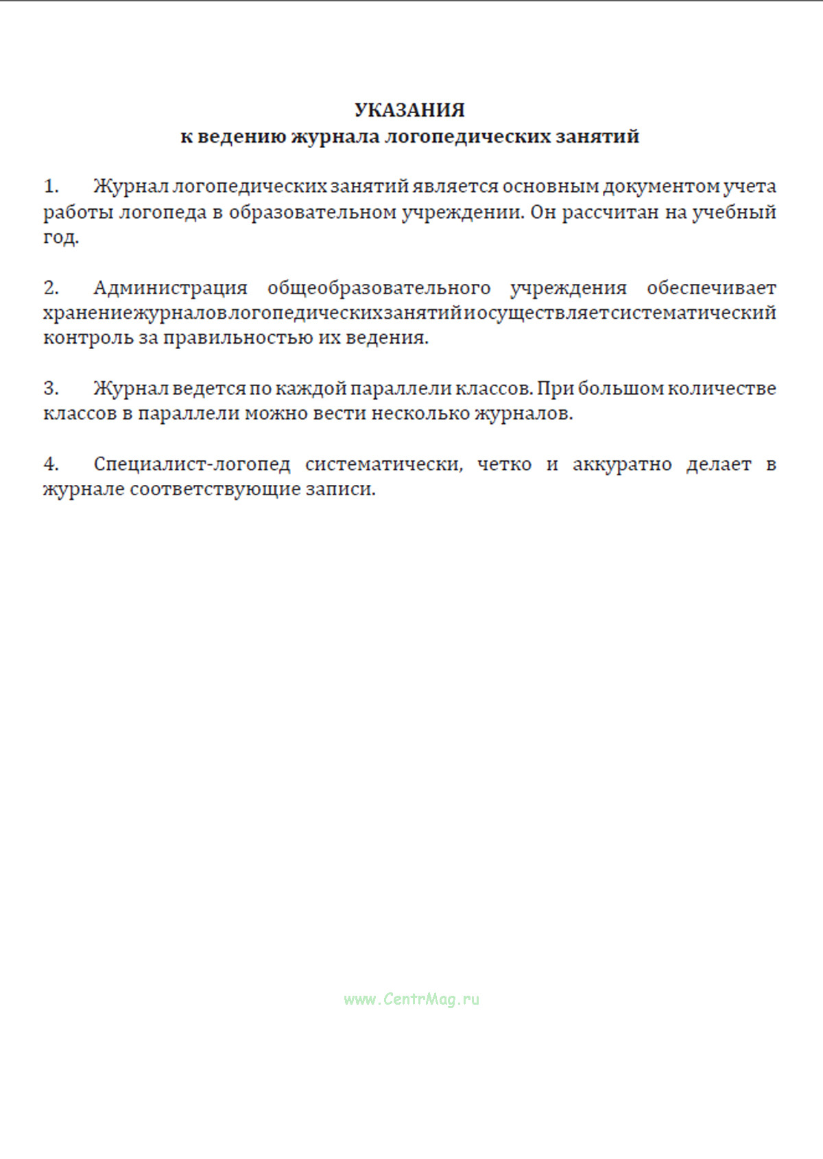 Указания к ведению журнала логопедических занятий