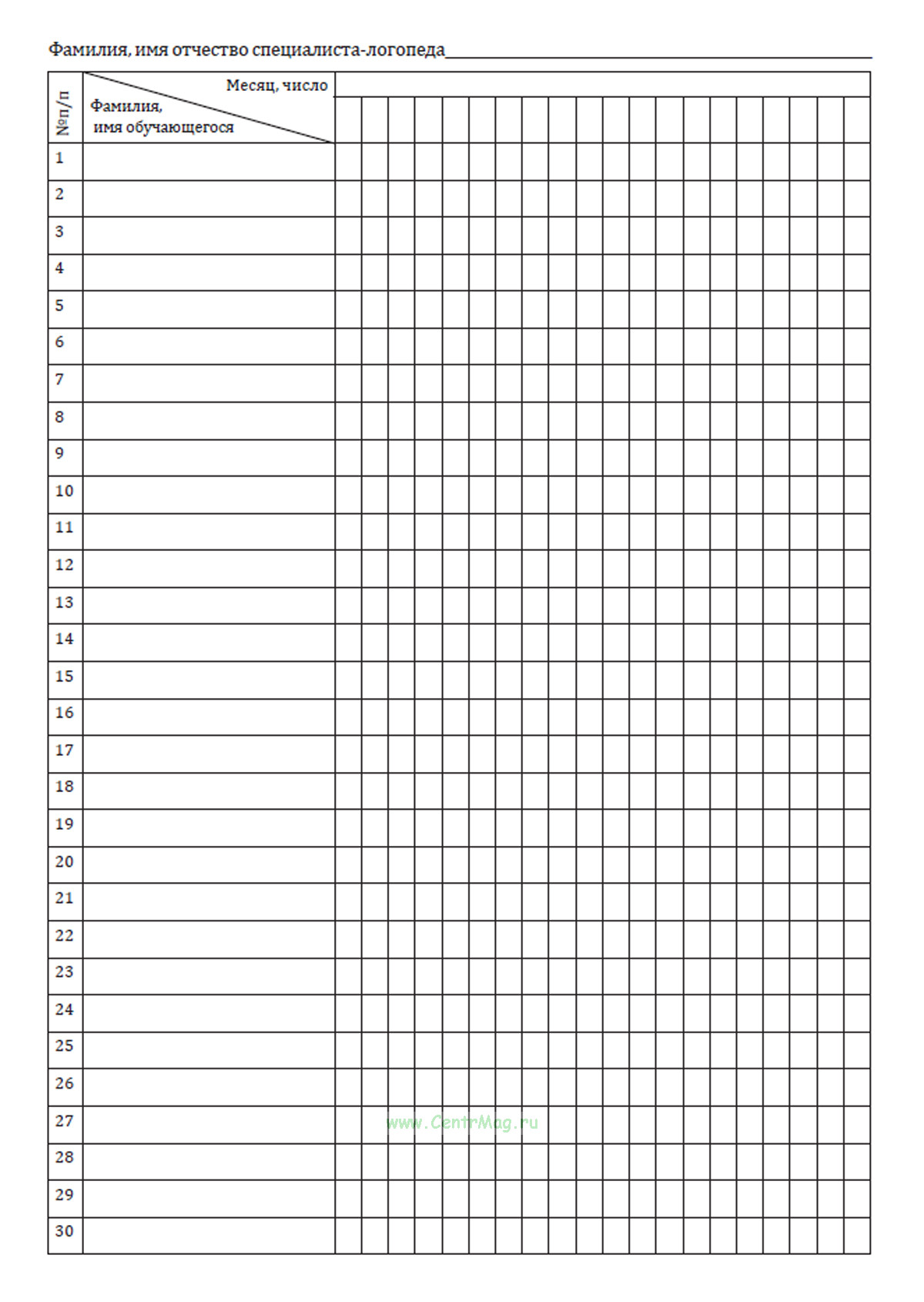 1. Журнал логопедических занятий является основным документом учета работы логопеда в образовательном учреждении.