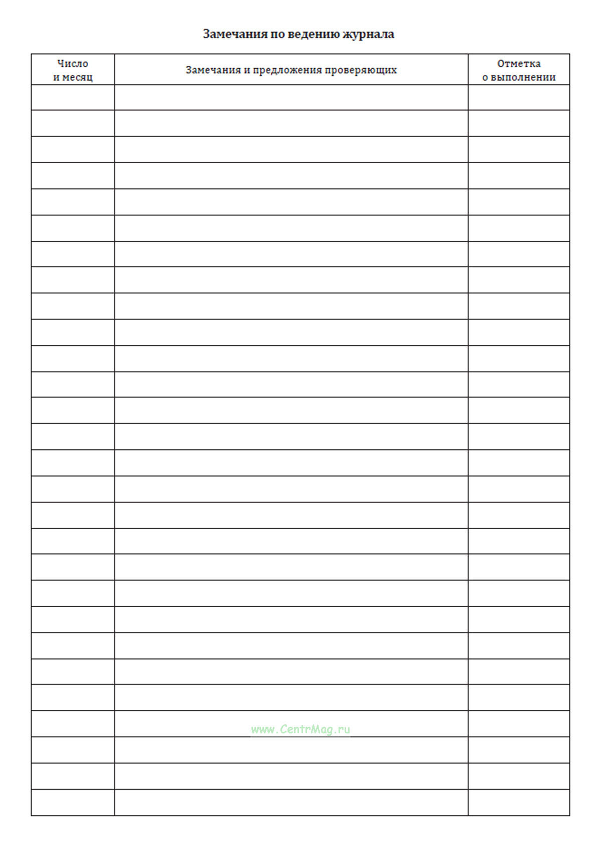 Замечания по ведению журнала