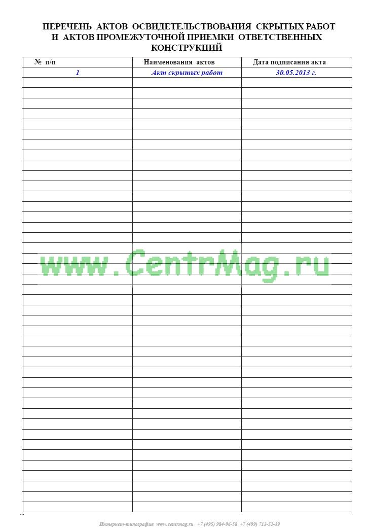 Перечень актов освидетельствования скрытых работ и актов промежуточной приемки ответственных конструкций