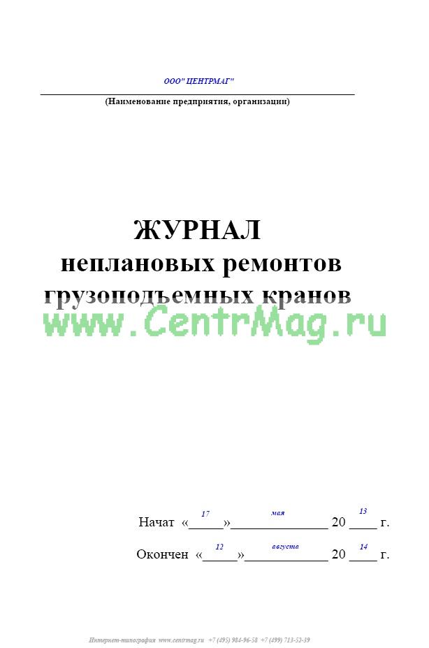 Проведение неплановых ремонтов грузоподъемных кранов заносят в журнал.