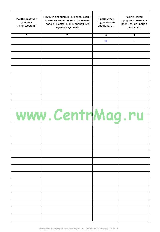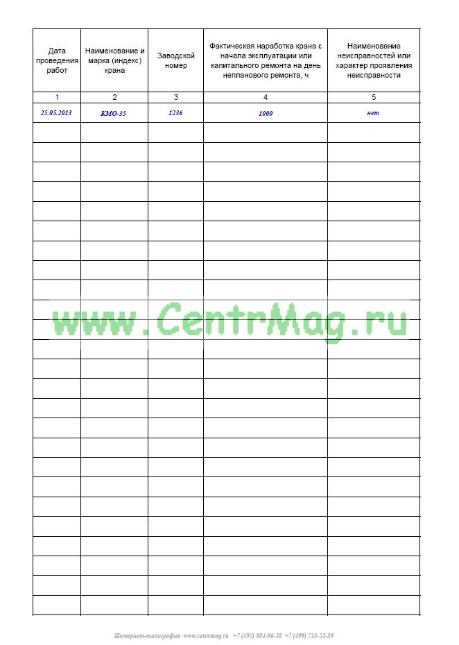 Графы журнала неплановых ремонтов грузоподъемных кранов: