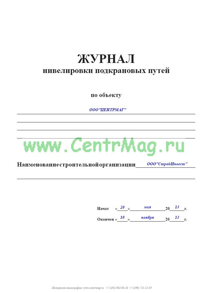 Журнал нивелировки подкрановых путей просьба не путать с журналом технического нивелирования, который используется для геодезических работ.