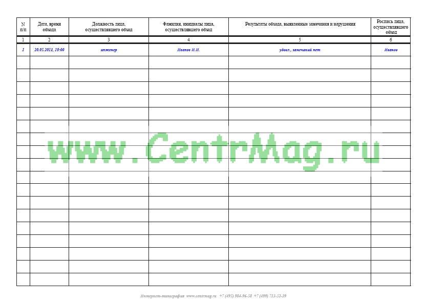 См. также журнал обходов рабочих мест, графы которого аналогичны журналу обходлв оборудовния.