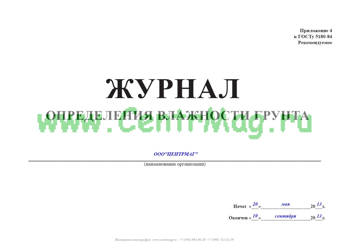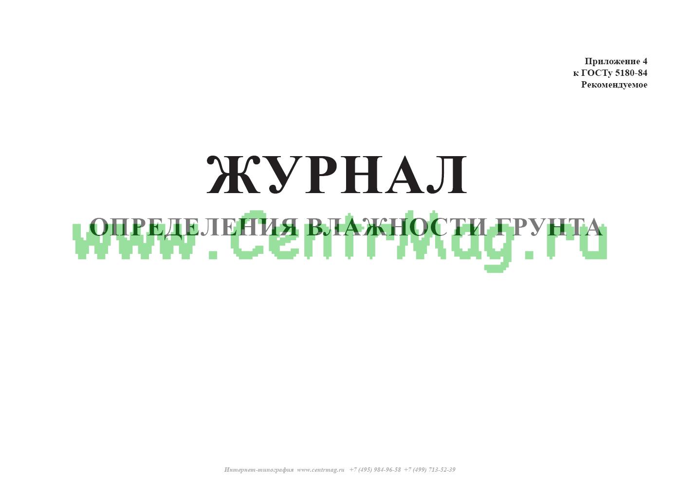 Форма журнала определения влажности грунта соответствует Приложению Б к ГОСТу 5180-2015 Грунты. Методы лабораторного определения физических характеристик