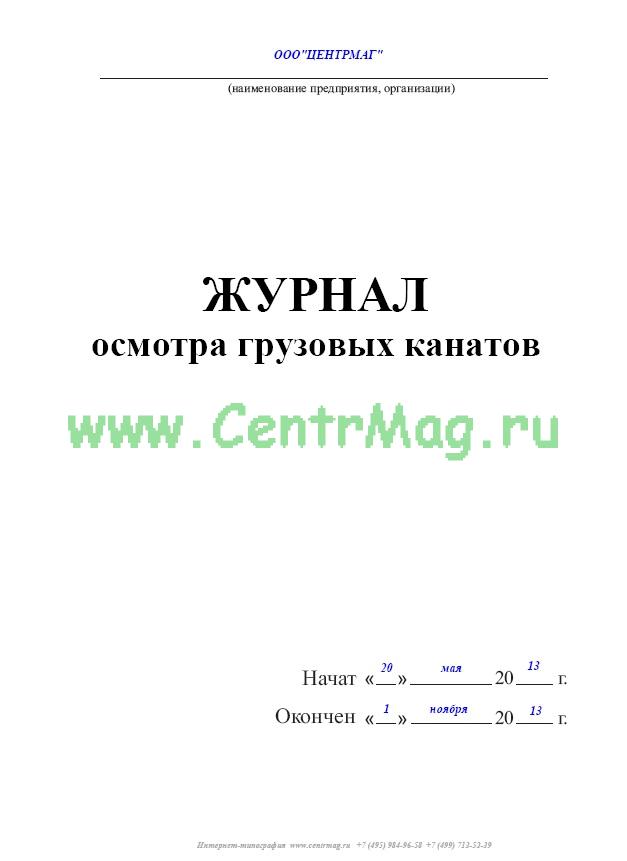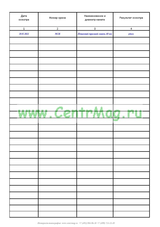 При испытаниях каната в обязательном порядке необходимо вести журнал учета испытаний каната. При монтаже каната составляют акт монтажа каната.
