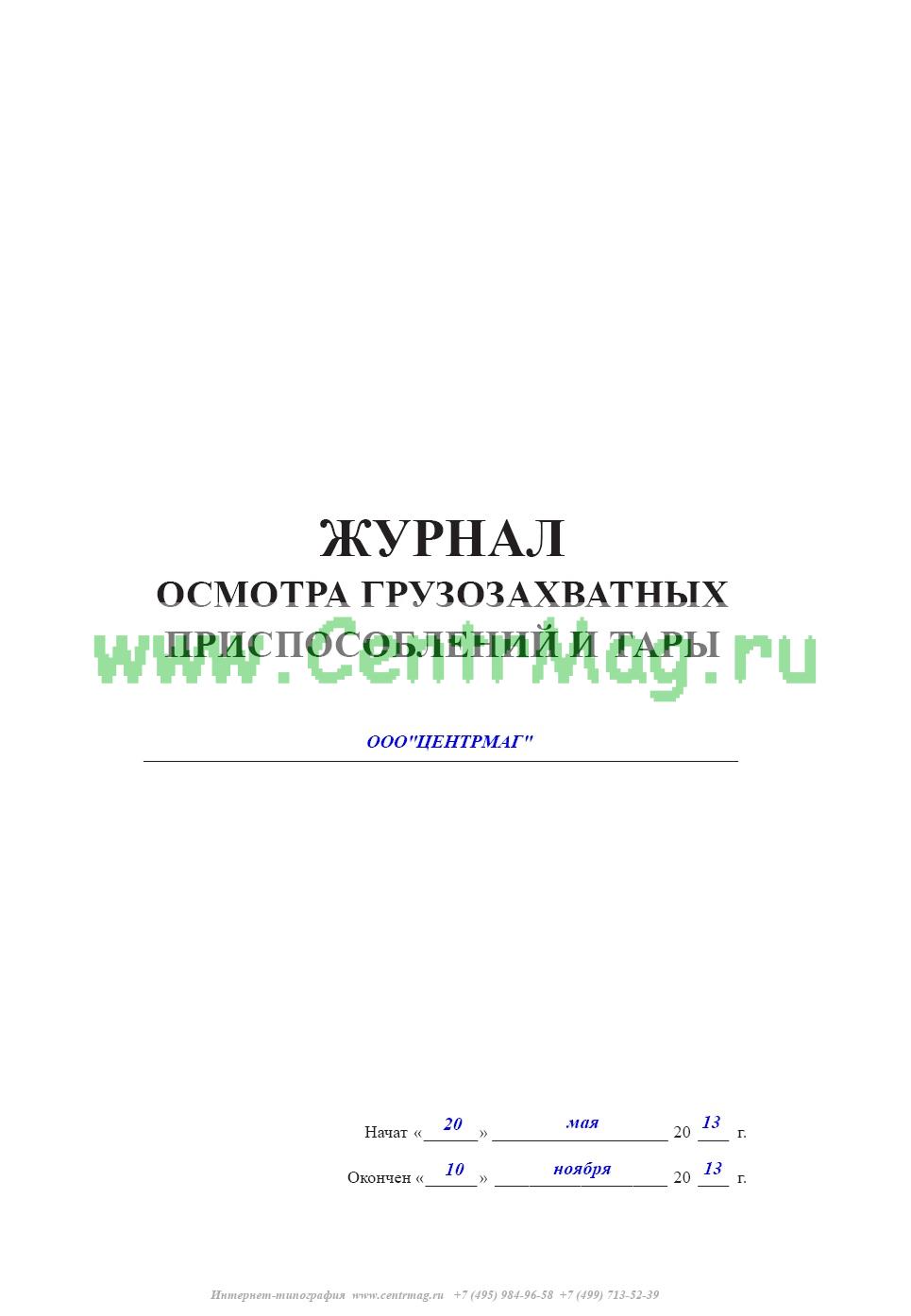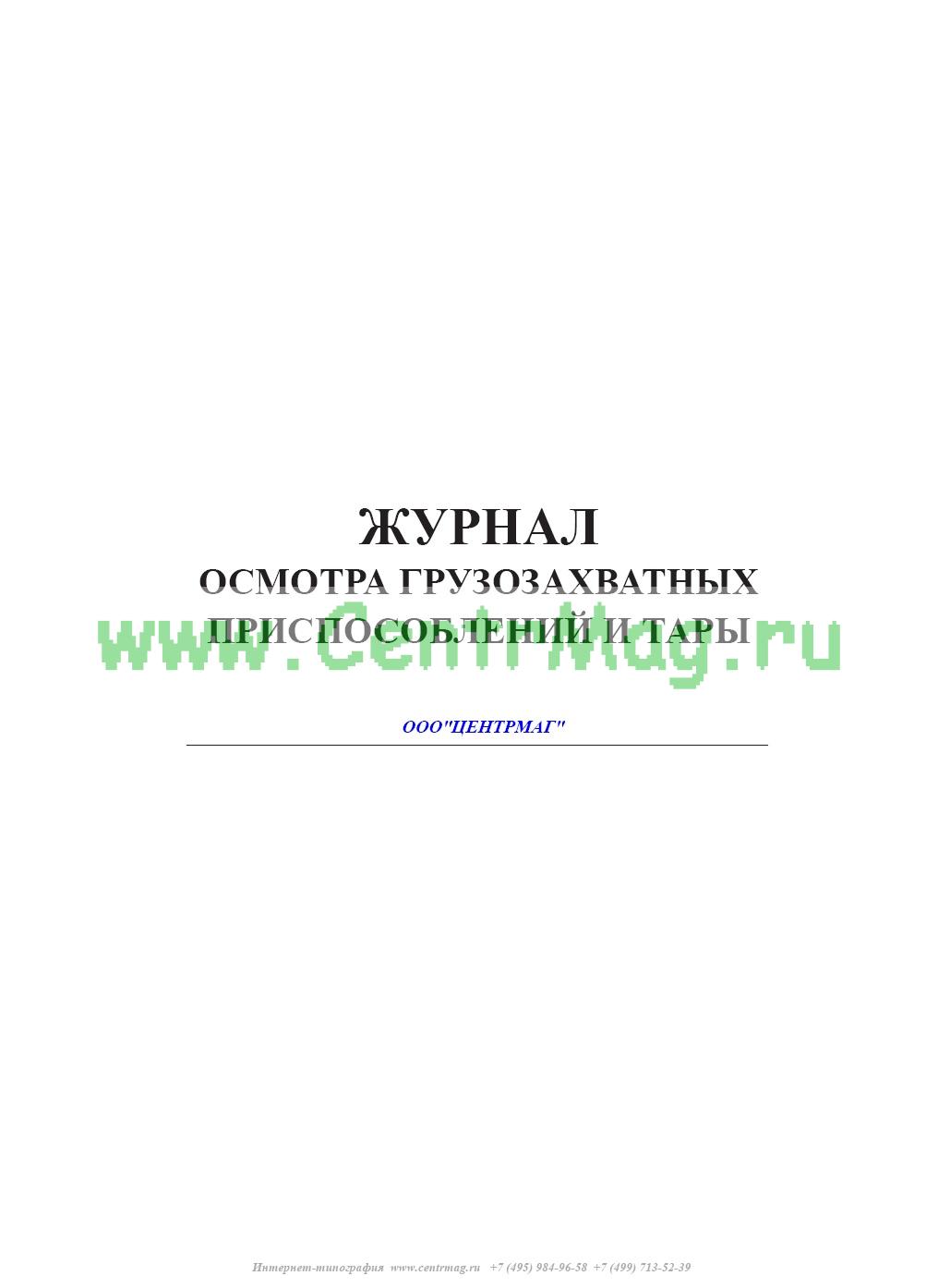 В отдельных случаях вместо журнала осмотра грузозахватных приспособлений и тары может применяться журнал учета и осмотра съемных грузозахватных приспособлений и тары .