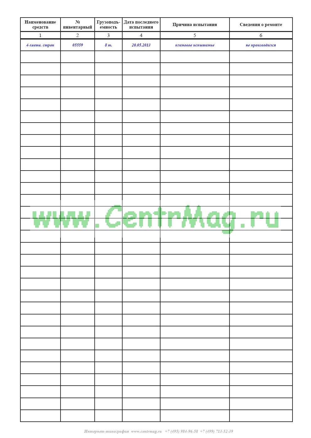 Журнал осмотра грузозахватных приспособлений и тары имеет графы (столбцы):