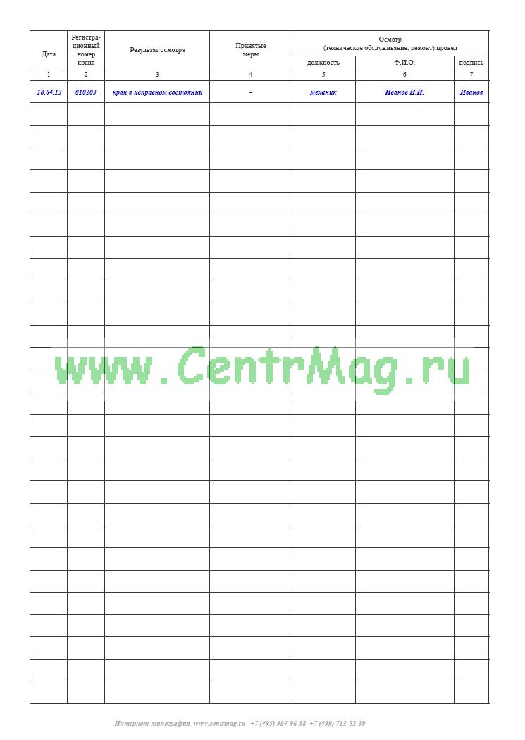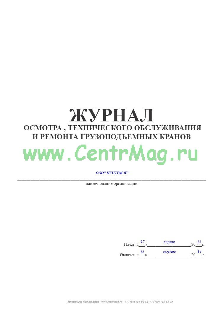 Образец и пример заполнения журнала осмотра, технического обслуживания и ремонта грузоподъемных кранов