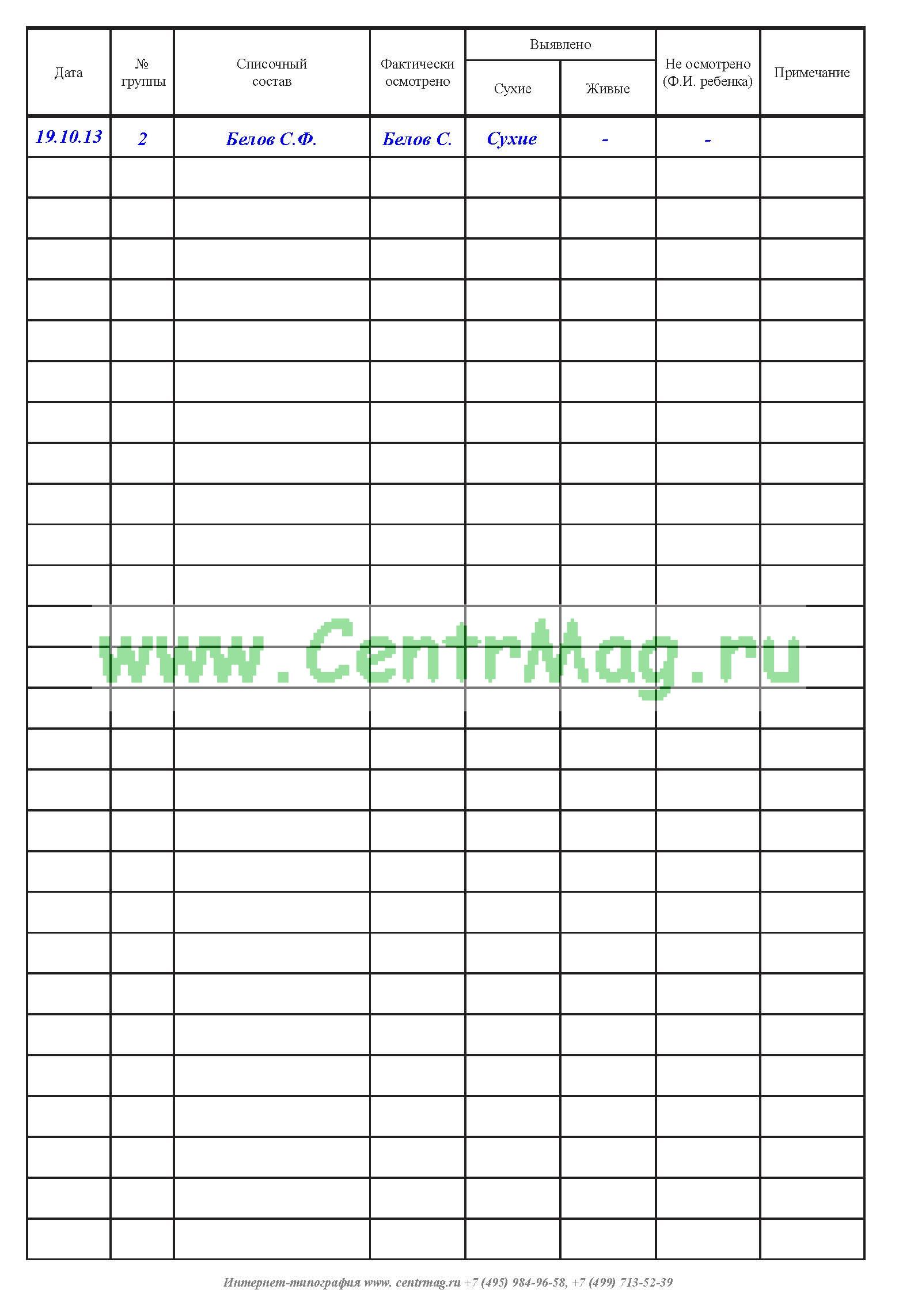 См. также: Журнал осмотра детей на чесотку и педикулез