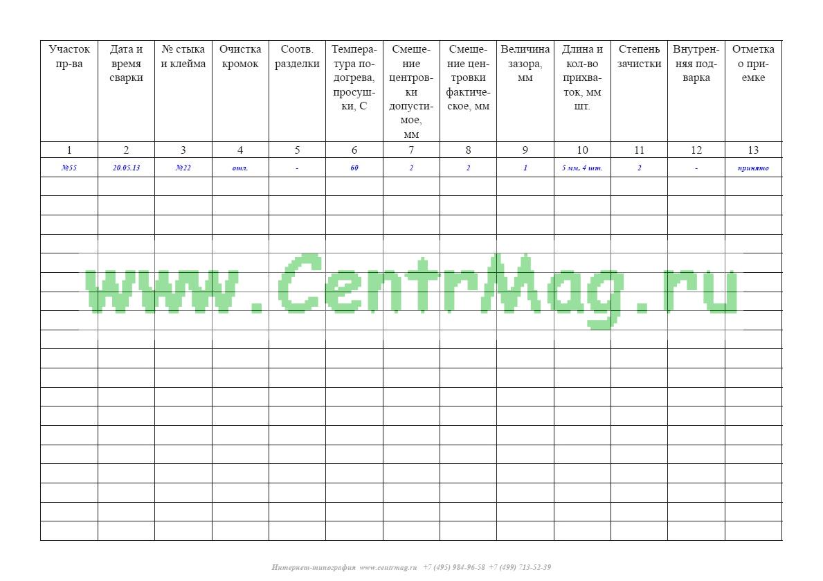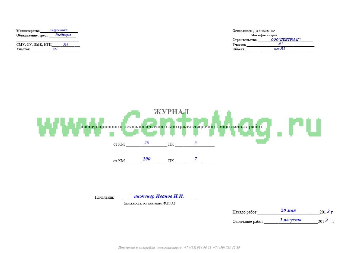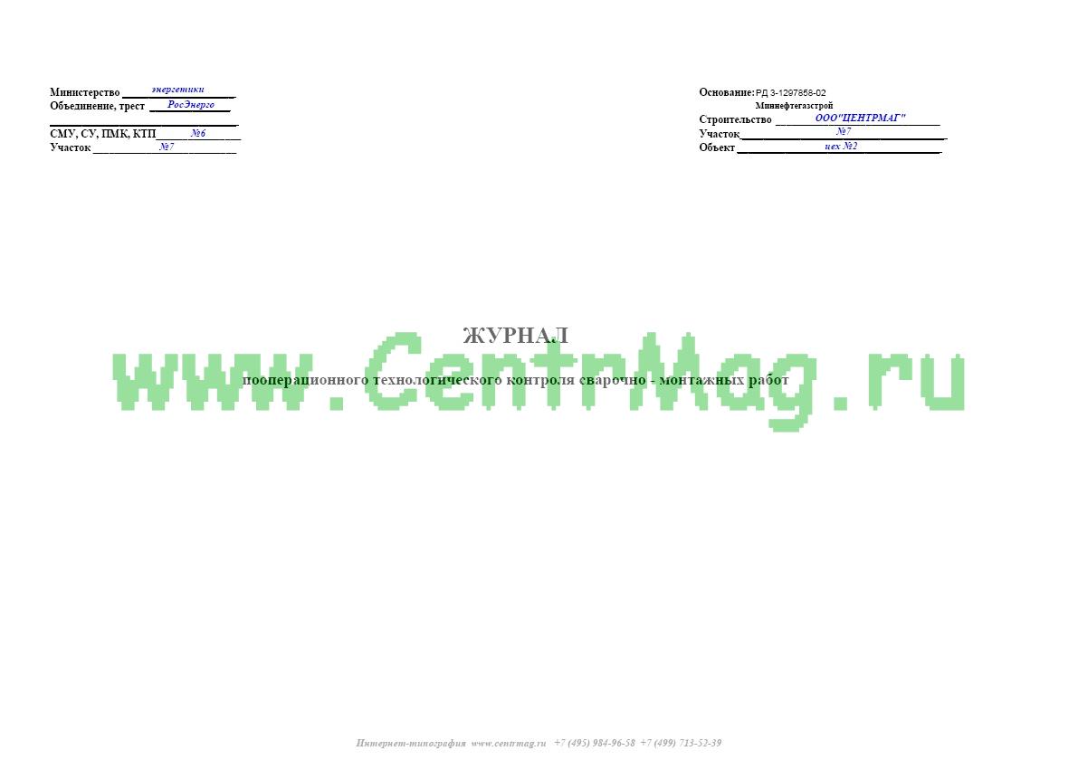Образец и пример заполнения журнала пооперационного технологического контроля сварочно-монтажных работ