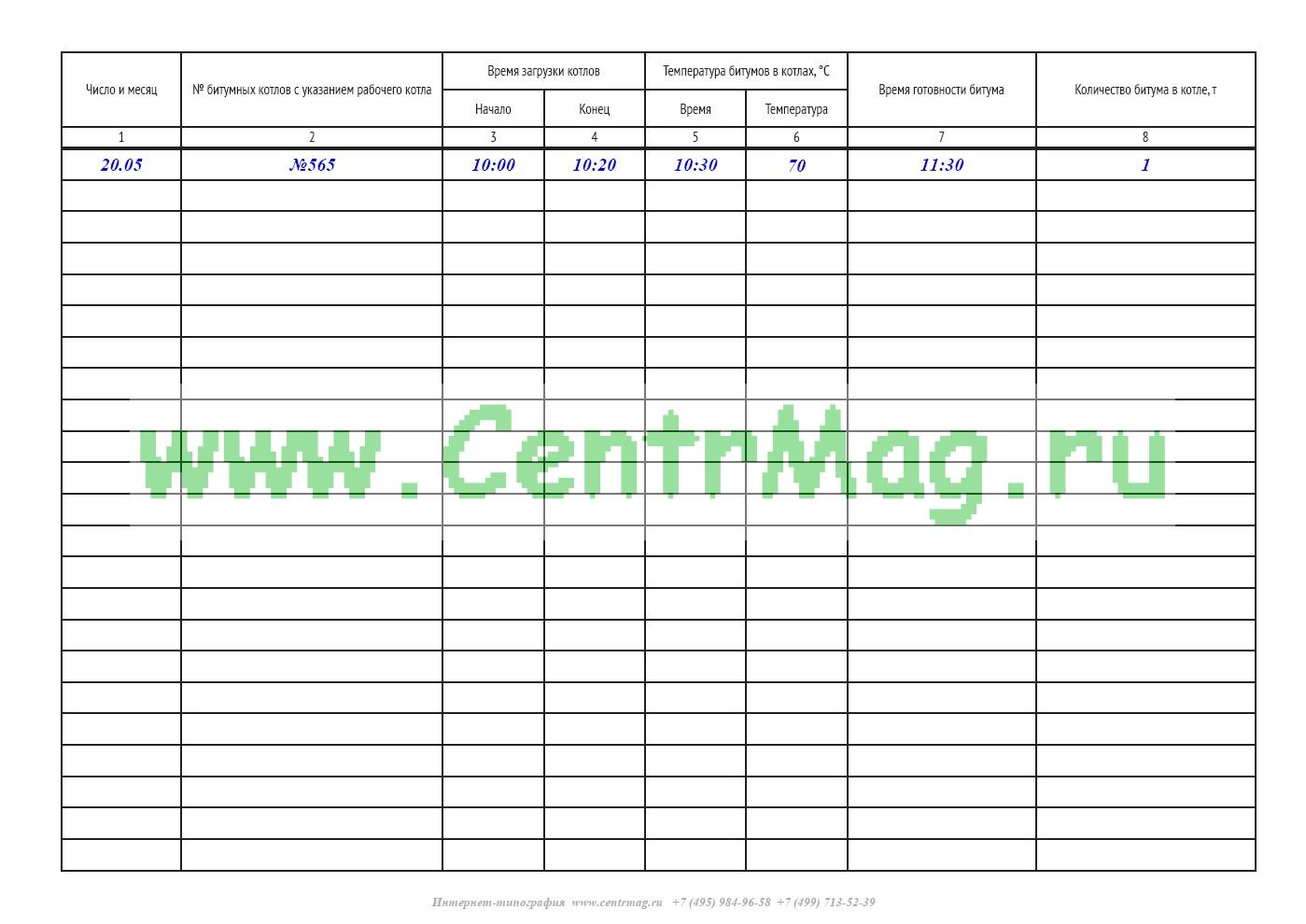 Журнал приготовления битума форма 9 имеет графы (столбцы):