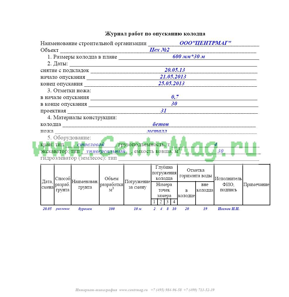 2. Записи в журнале должны производиться непосредственно у места опускания колодца. Ведение черновых записей на отдельных листках, тетрадях и т.п. с последующим переписыванием в журнал запрещается.