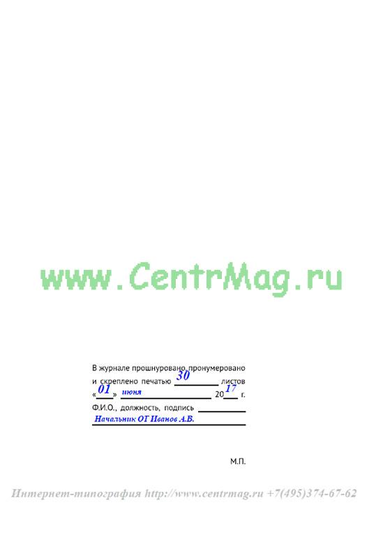 Журналы для автодорог, дорожного хозяйстваЖурналы для АЗС и АЗГСЖурналы для аптекЖурналы для архивовЖурналы для аттракционовЖурналы для банковЖурналы для бассейновЖурналы для бухгалтерииЖурналы для газовых хозяйств, газораспределительных систем, ГАЗПРОМаЖурналы для гостиниц, общежитий, хостеловЖурналы для грузоподъемных механизмовЖурналы для делопроизводстваЖурналы для драгметалловЖурналы для ЖКХЖурналы для канатных дорог, фуникулеровЖурналы для кладбищЖурналы для конструкторских, научно-техническая документацияЖурналы для лесных хозяйствЖурналы для лифтовЖурналы для медицинских учрежденийЖурналы для МЧСЖурналы для нефтебазЖурналы для нефтепромысла, нефтепроводовЖурналы для образовательных учрежденийЖурналы для парикмахерских, салонов красоты, маникюрных, педикюрных кабинетовЖурналы для проверки и контроля госорганами, контролирующими организациямиЖурналы для промышленностиЖурналы для работ с повышенной опасностьюЖурналы для регулирования алкогольного рынкаЖурналы для сельских хозяйств, ветеринарииЖурналы для складовЖурналы для снегоплавильных пунктовЖурналы для стройки, строительстваЖурналы для тепловых энергоустановок, котельныхЖурналы для транспортаЖурналы для туризмаЖурналы для учреждений культуры, библиотек, музеевЖурналы для церкви, религиозных организацийЖурналы для шахт, рудников, метрополитенов, подземных сооруженийЖурналы для электроустановокЖурналы и бланки для армии, вооруженных силЖурналы и бланки для нотариусов, юристов, адвокатовЖурналы и бланки для организаций пищевого производства, общепита и пищевых блоковЖурналы и бланки для организаций, занимающихся охраной объектов и частных лицЖурналы и бланки для ФТС РФ (таможни)Журналы и бланки по экологииЖурналы и бланки, используемые в торговле, бытовом обслуживанииЖурналы и бланки, относящиеся к нескольким отраслямЖурналы по геодезии, геологииЖурналы по метрологииЖурналы по охране труда и технике безопасностиЖурналы по пожарной безопасностиЖурналы по психологииЖурналы по санитарии, проверкам СЭСЖурналы по связиЖурналы по эксплуатации зданий и сооруженийЖурналы по энергетикеЖурналы, бланки, формы для кадровых работЖурналы, бланки, формы документов для органов прокуратуры и суда, минюста, пенитенциарной системыЖурналы, бланки, формы документов МВД РФ, РосгвардииКомплекты документов и журналовОбложки для журналов и удостоверенийСамокопирующиеся бланки