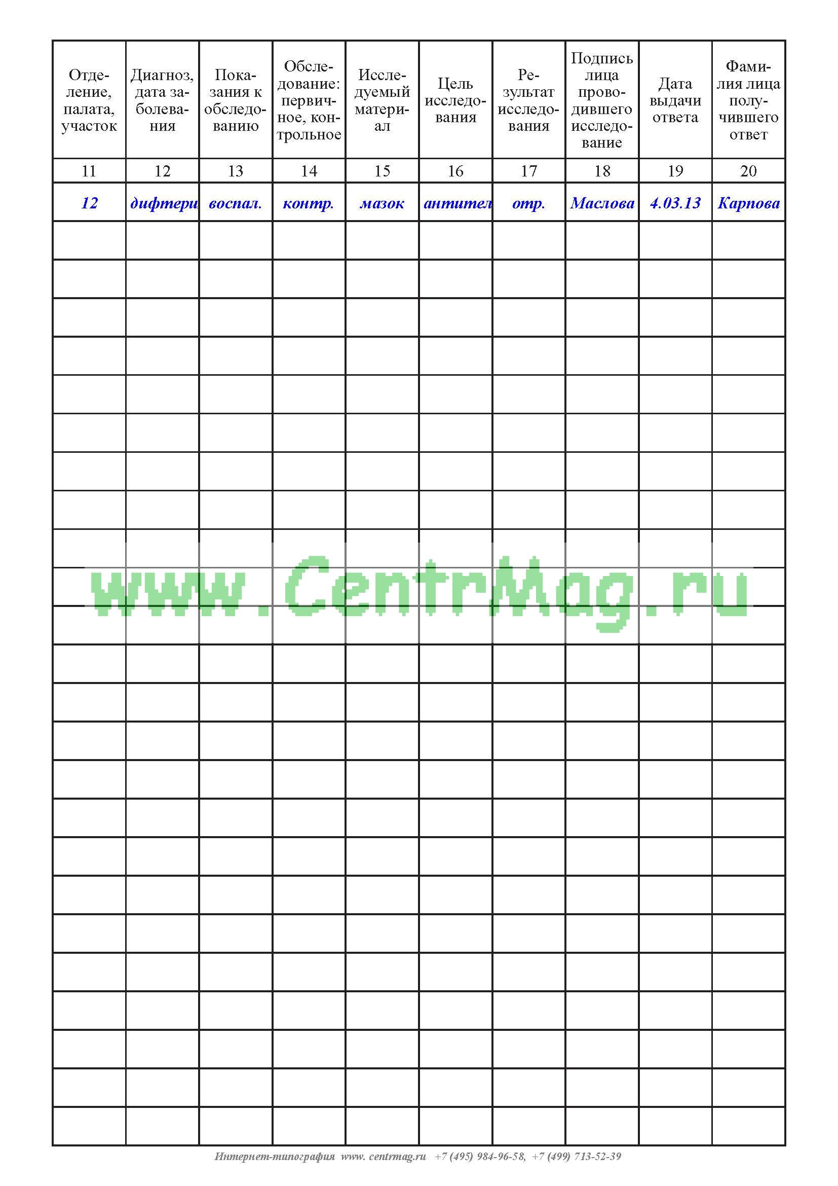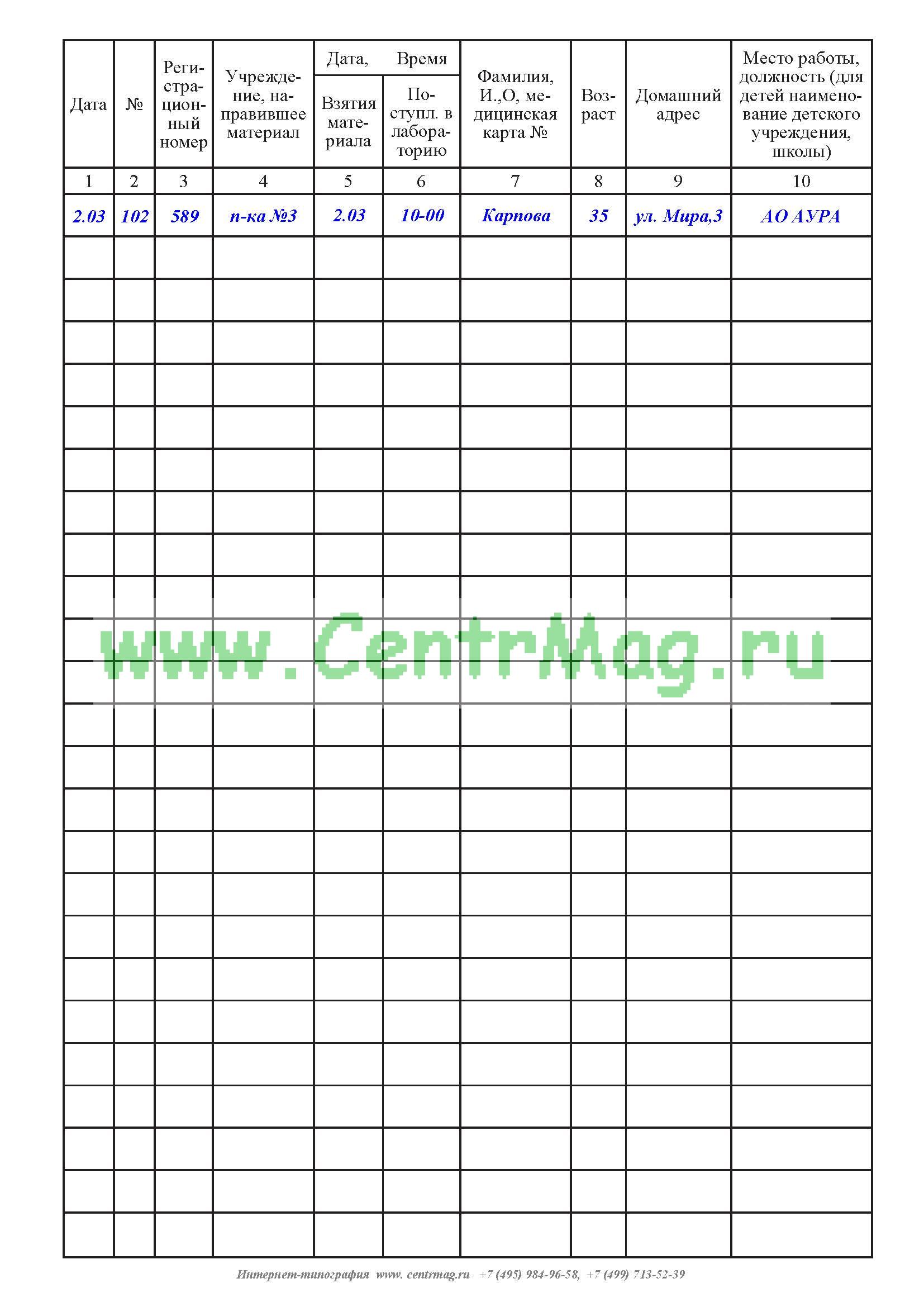 Образец и пример заполнения журнала регистрации микробиологических и паразитологических исследований