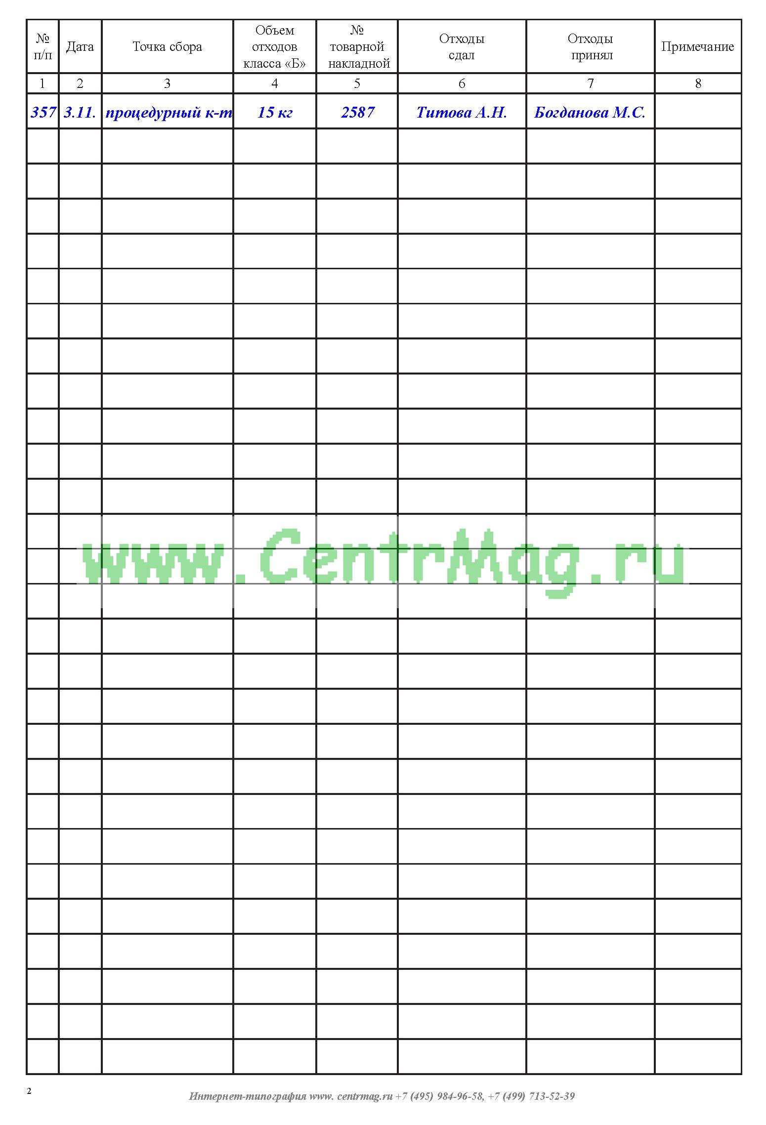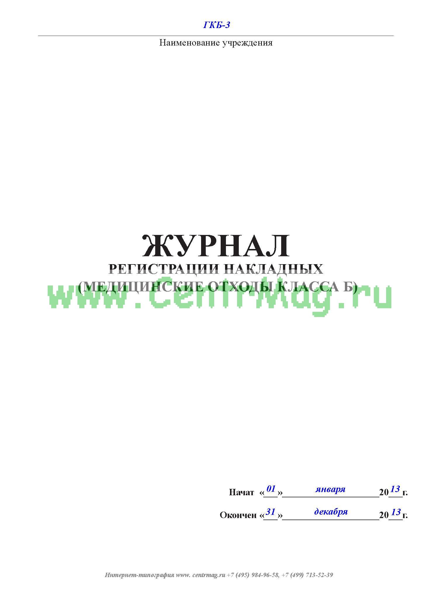 Журнал регистрации накладных медицинских отходы класса Б имеет графы (столбцы):