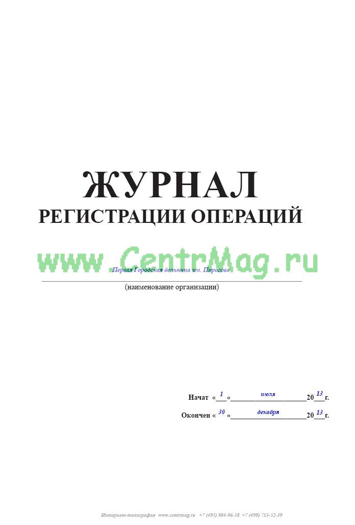Журнал регистрации операций дает возможность в оперативном порядке следить за числом и характером проведенных операций, применяемыми видами обезболивания, нагрузкой на отдельных хирургов.