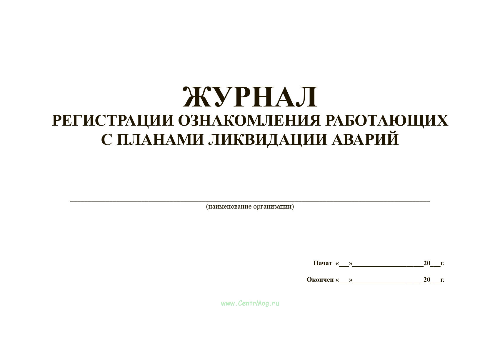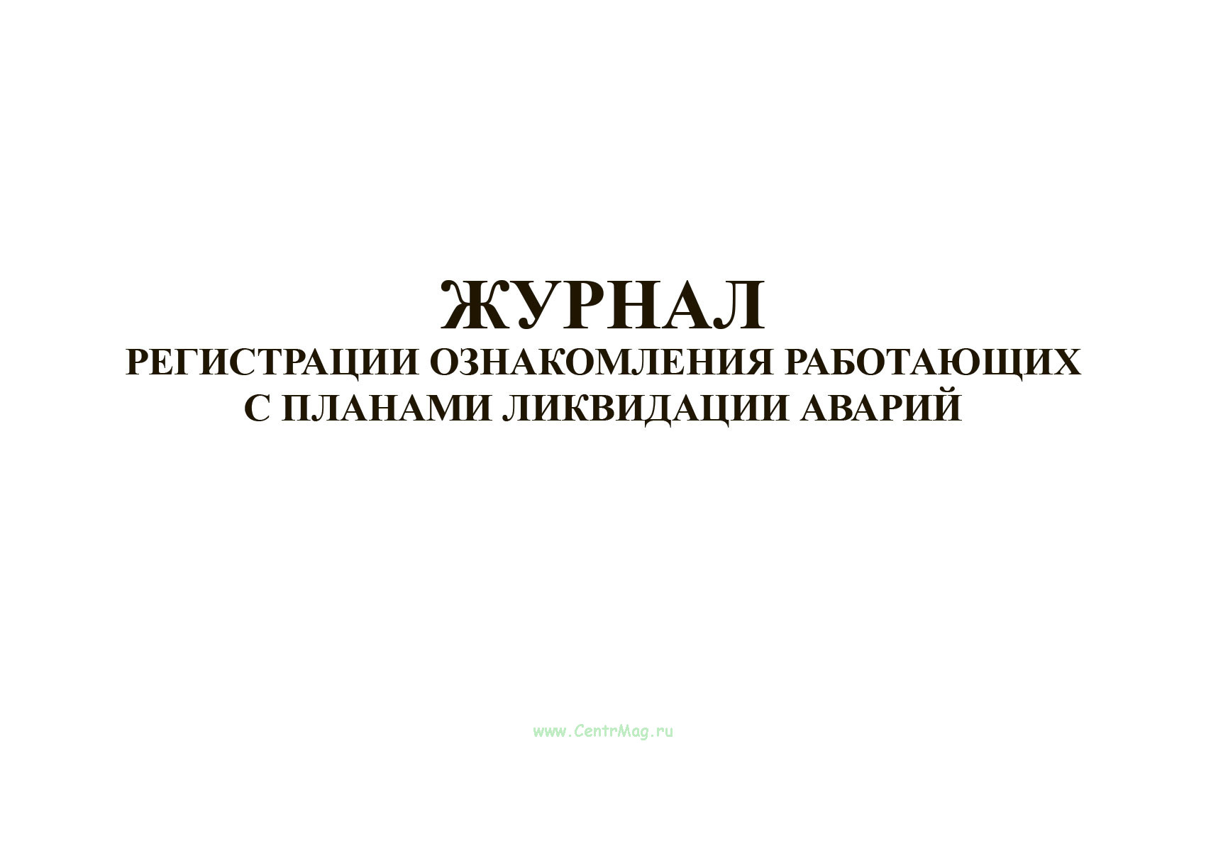 Журнал регистрации ознакомления работающих с планами ликвидации аварий предназначен для документального учета фактов ознакомления сотрудников с планами ликвидации аварий (ПЛА), утвержденными на предприятии в соответствии с требованиями промышленной, экологической и пожарной безопасности.