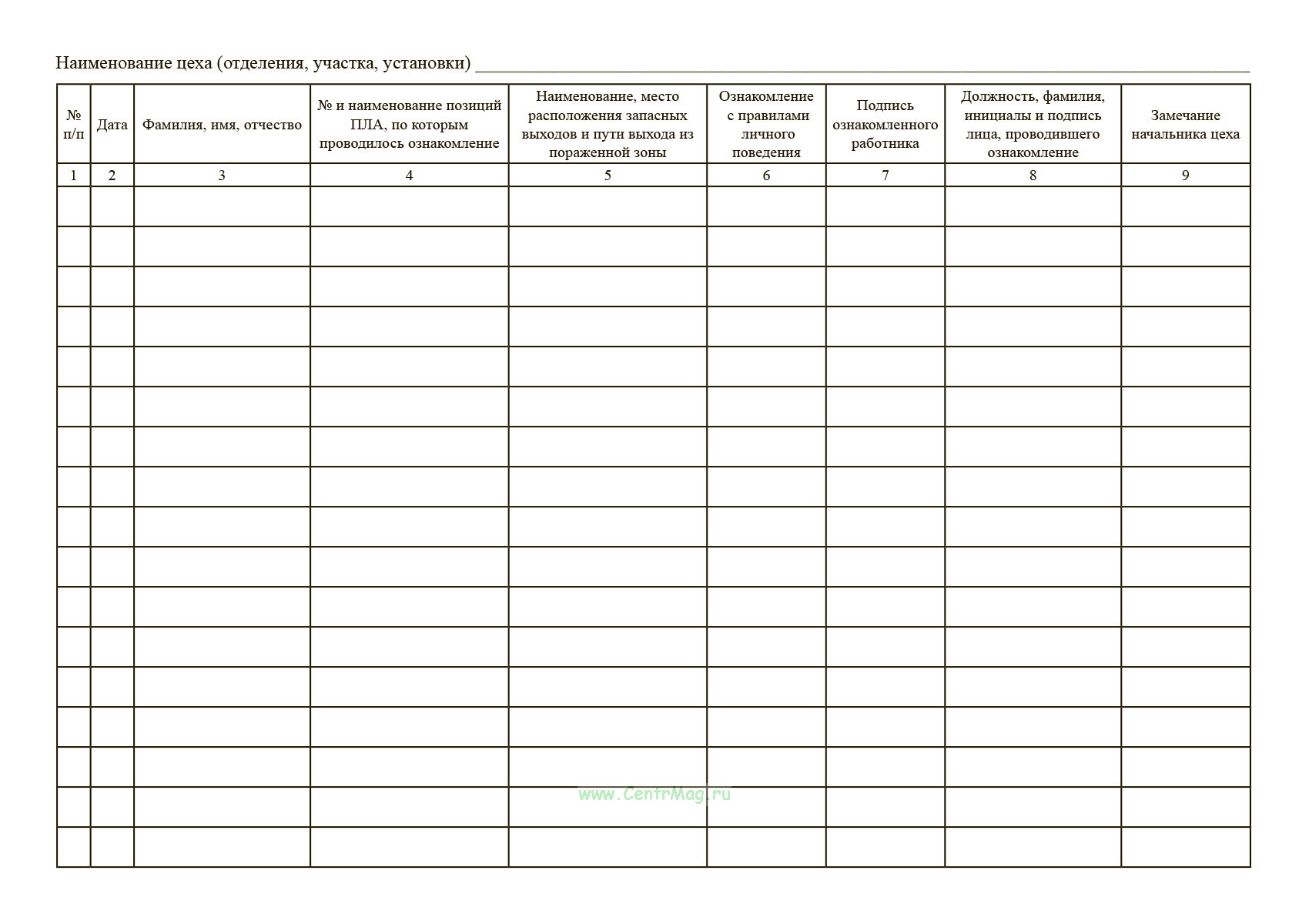 Журнал регистрации ознакомления работающих с планами ликвидации аварий имеет графы: