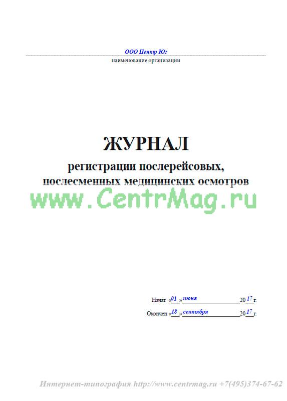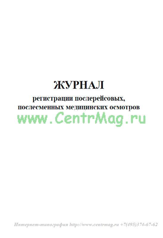 Результаты проведенных послесменных, послерейсовых медицинских осмотров вносятся в журнал регистрации послерейсовых, послесменных медицинских осмотров.