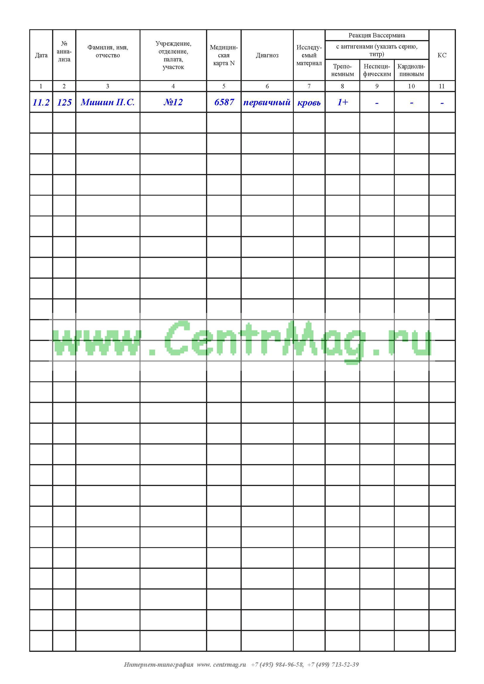 В отдельных случаях используют журнал учета серологических исследований на паразитарные заболевания, а также журнал регистрации серологических исследований, 259/у.