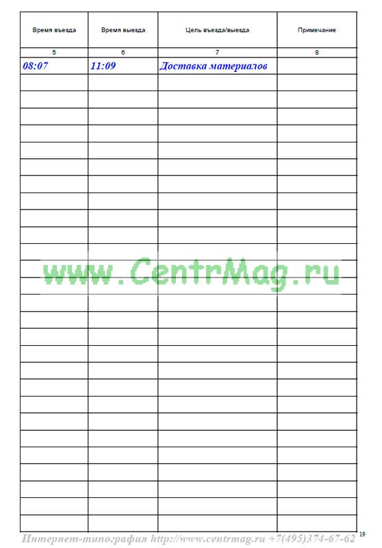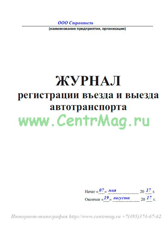 Журнал регистрации въезда и выезда автотранспорта ведется в подразделениях и службах предприятия, ответственных за контроль передвижения автотранспорта по территории предприятий.