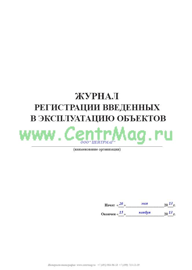 Регистрация введенных в эксплуатацию объектов и учет введенных в эксплуатацию объектов — это одни из многочисленных примеров операций, которые регулируются действующим законодательством. Журнал регистрации введенных в эксплуатацию объектов содержит информацию об объектах, заказчиках, датах регистрации объектов.