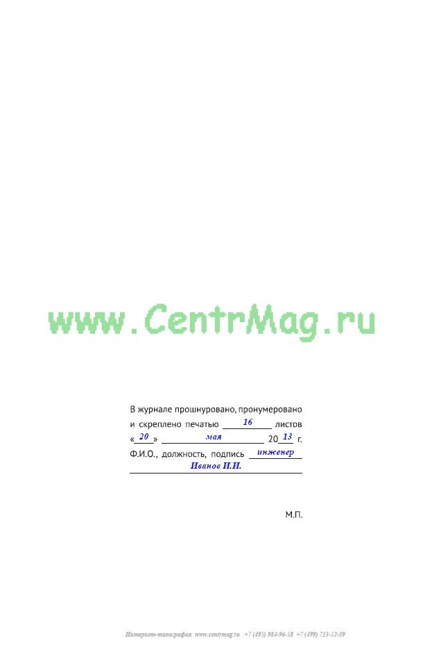 Во избежание изъятия или вложения страниц в документ, листы журнала прошнуровываются, нумеруются и скрепляются печатью. На тыльной стороне журнала ставиться дата оформления документа и залепляется подписью и печатью ответственного лица.