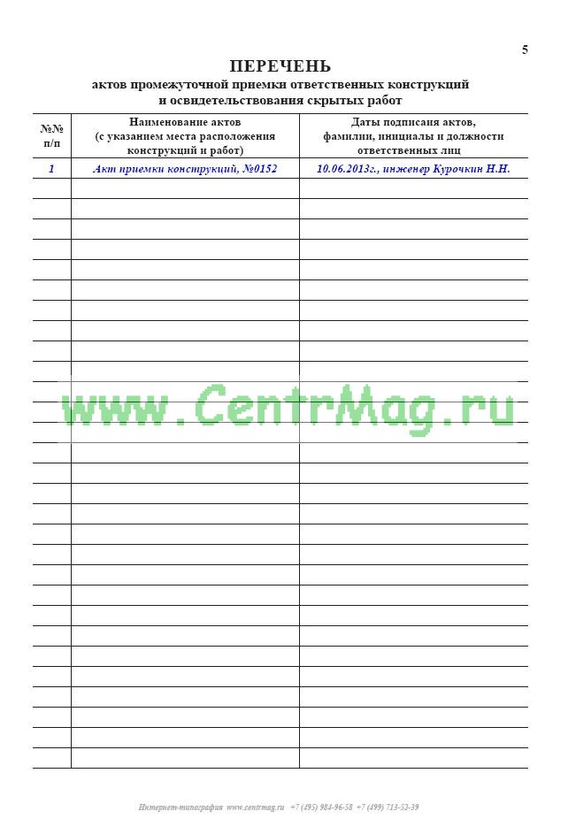 Данный документ подтверждает правильность выполнения скрытых работ, если таковые были.