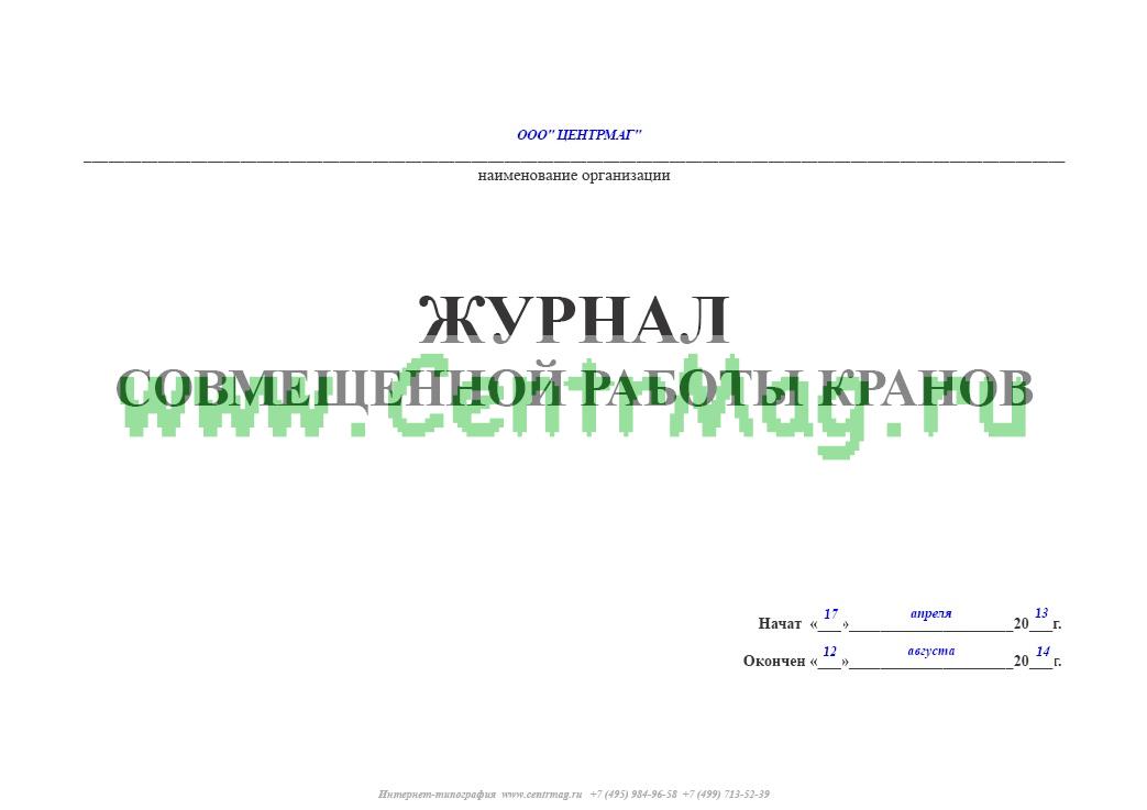 При совмещенной работе на кране необходимо вести соответствующий журнал.