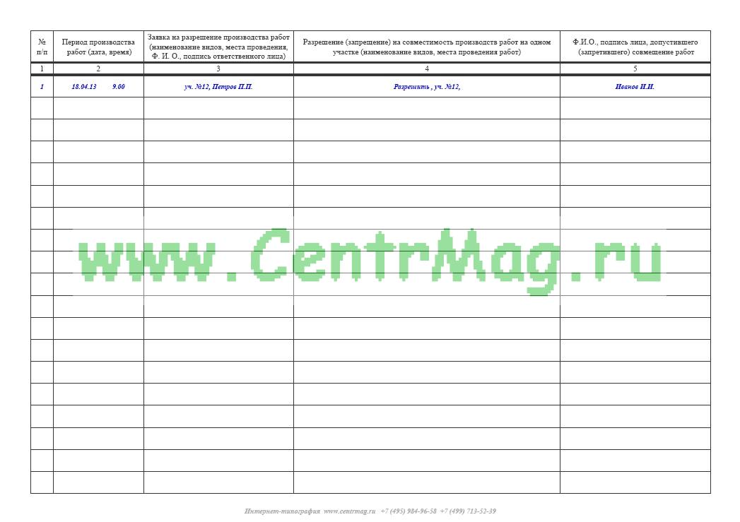 4 Разрешение (запрещение) на совместимость производств работ на одном участке (наименование видов, места проведения работ)
