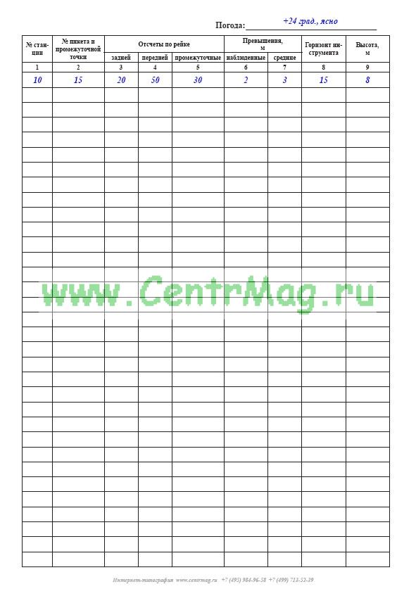 Опытные геодезисты рекомендуют пользоваться журналом технического нивелирования. Форма УТ-20 (Формат А5)