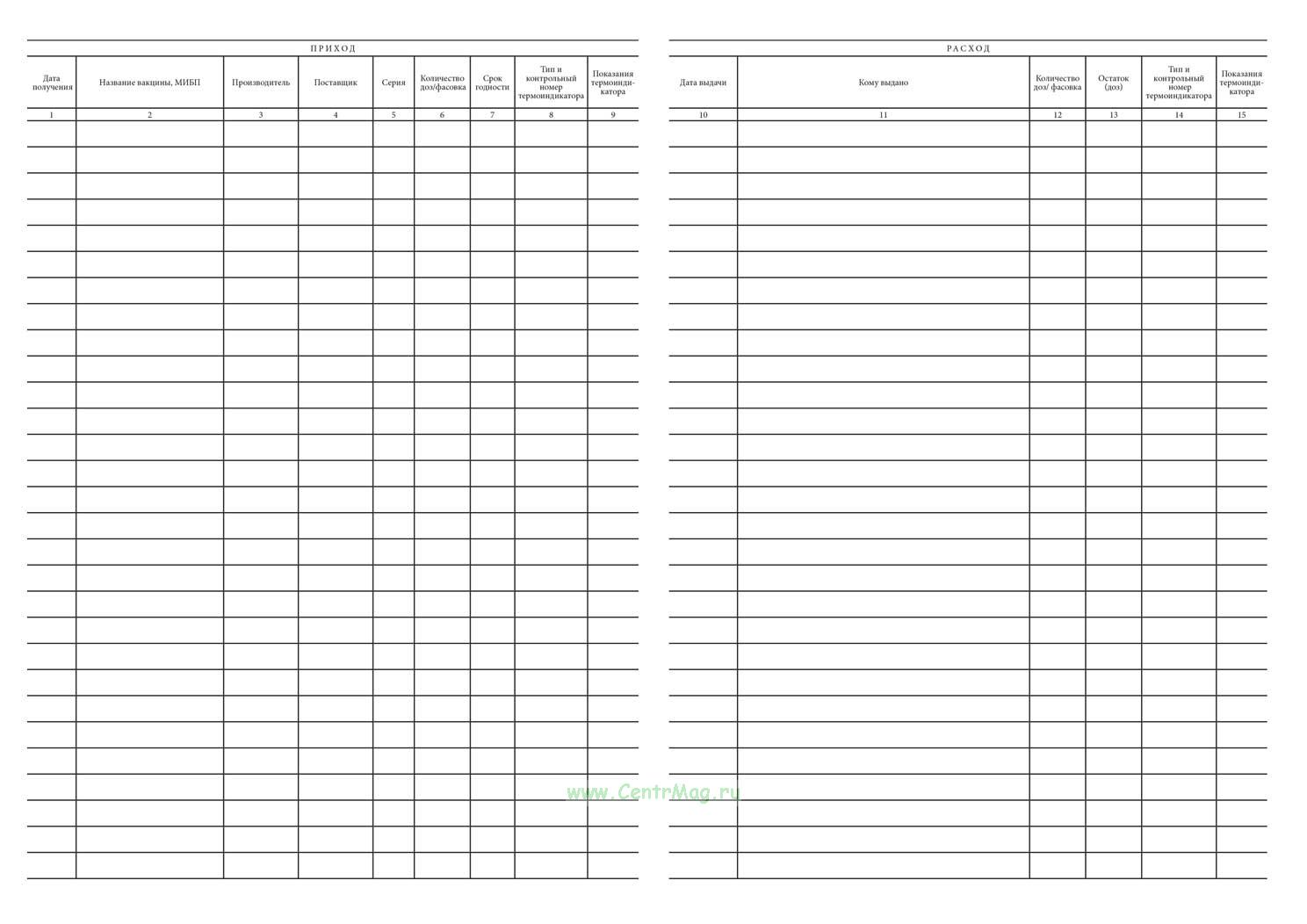 Форма журнала МИБП (означает медицинских иммунобиологических препаратов) определена Приложением 1 к МУ 3.3.2.2437—09 Применение термоиндикаторов для контроля температурного режима хранения и транспортирования медицинских иммунобиологических препаратов в системе «холодовой цепи».