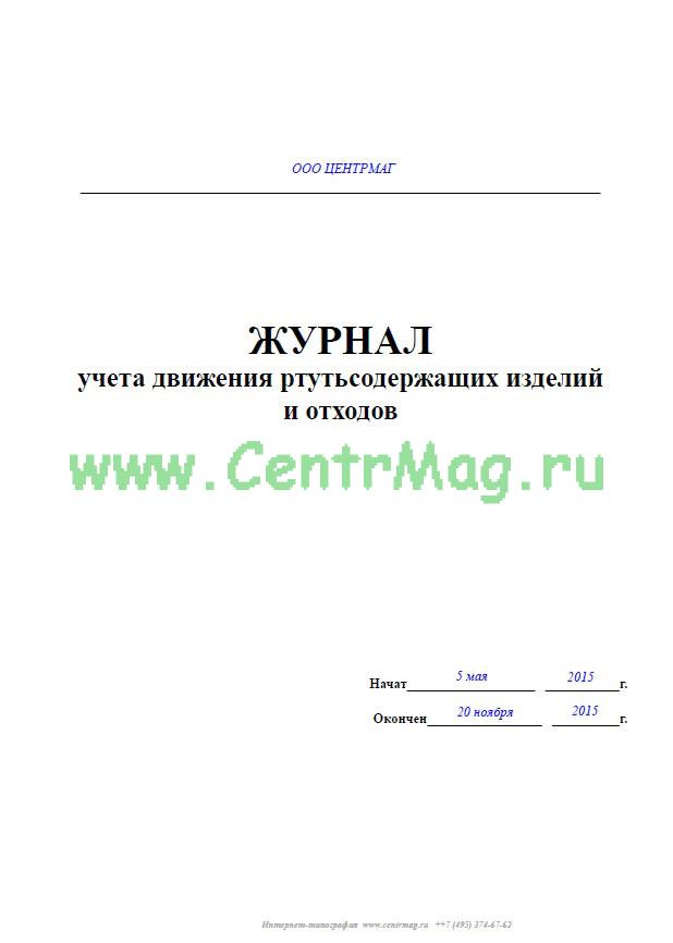 Форма журнала учета движения ртутьсодержащих изделий и отходов определяется приказами территориальных и муниципальных образований.