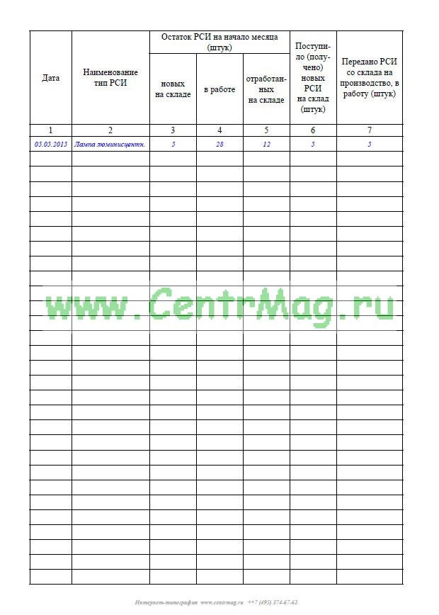 Указания по ведению журнала учета движения ртутьсодержащих изделий и отходов:
