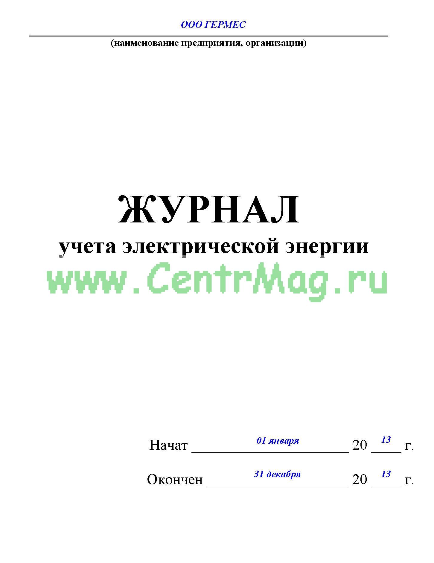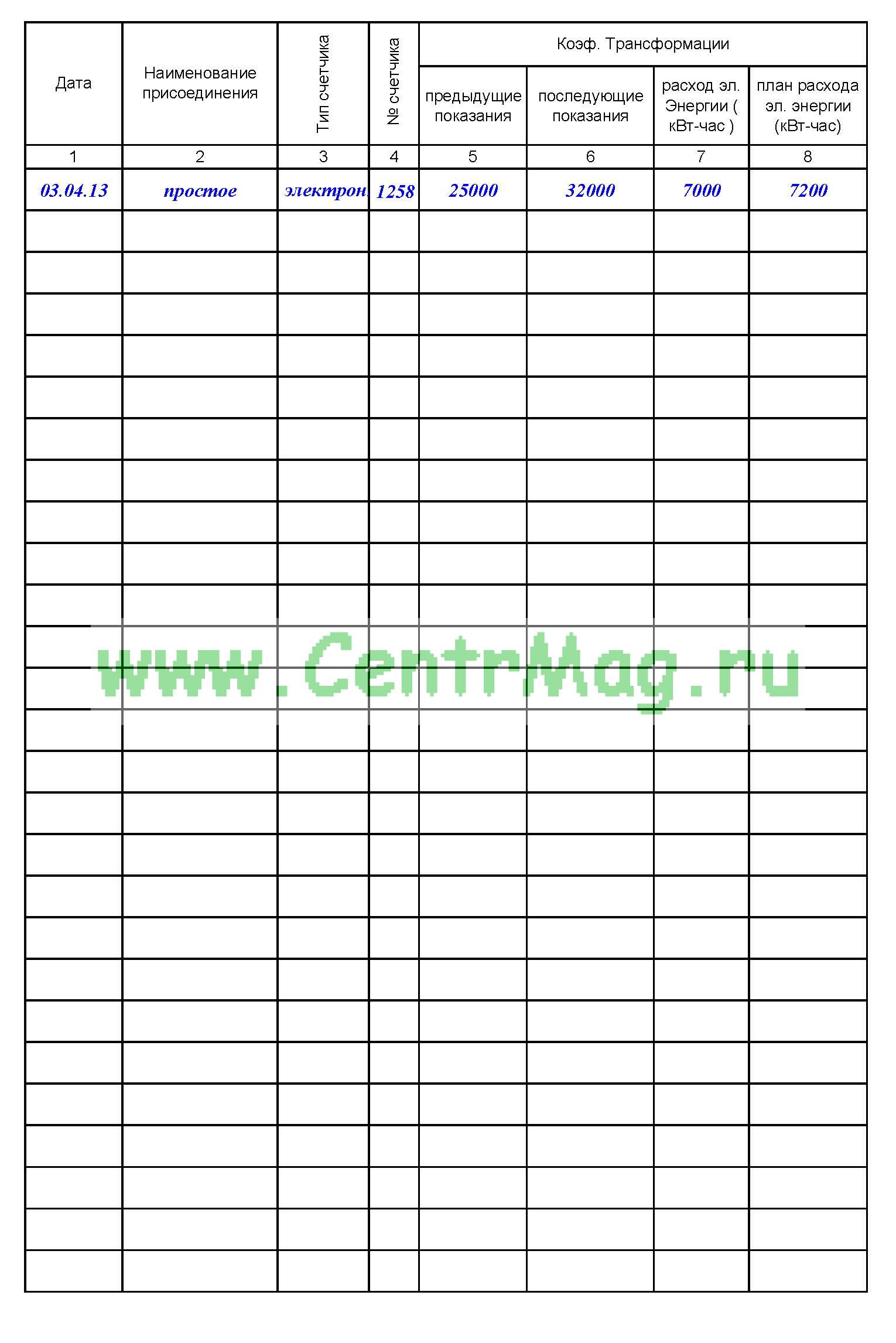 Журнал учета электрической энергии предназначен для регистрации расхода электроэнергии на основе показаний приборов учета энергии (электросчетчиков).