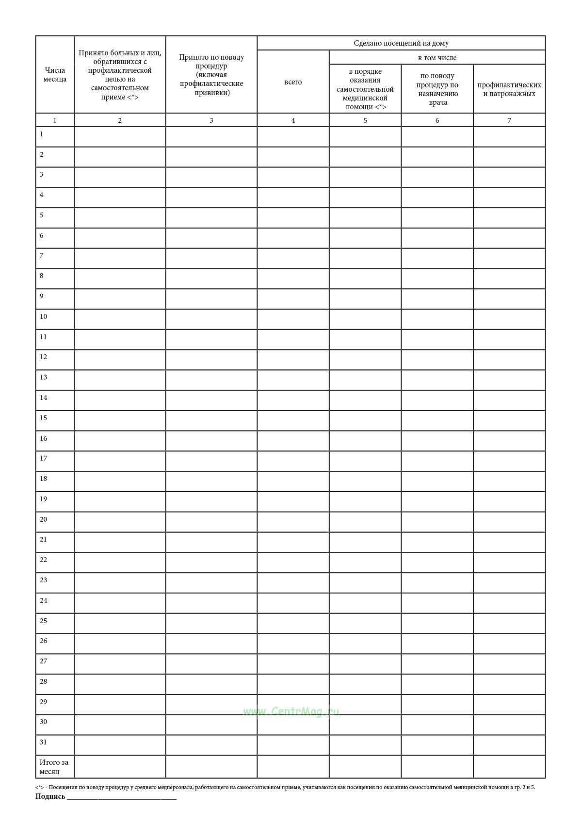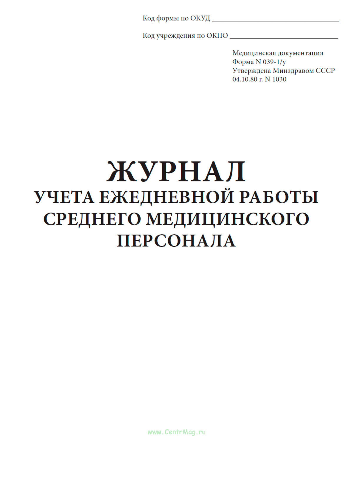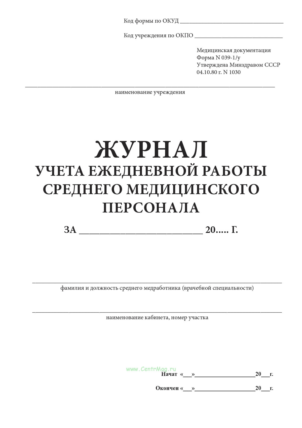 Форма Журнал учета ежедневной работы среднего медицинского персонала соответствует Переченю форм первичной медицинской документации учреждений здравоохранения утвержденый Приказом Минздрава СССР от 04.10.1980 N 1030.