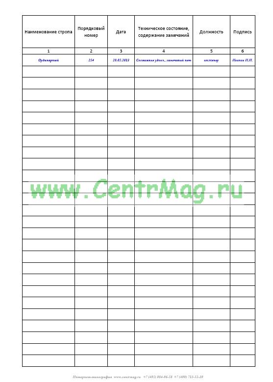 Журнал учета и осмотра стропов применяется чаще чем журнал учета и осмотра стропов (тары), имеющий 8 граф.