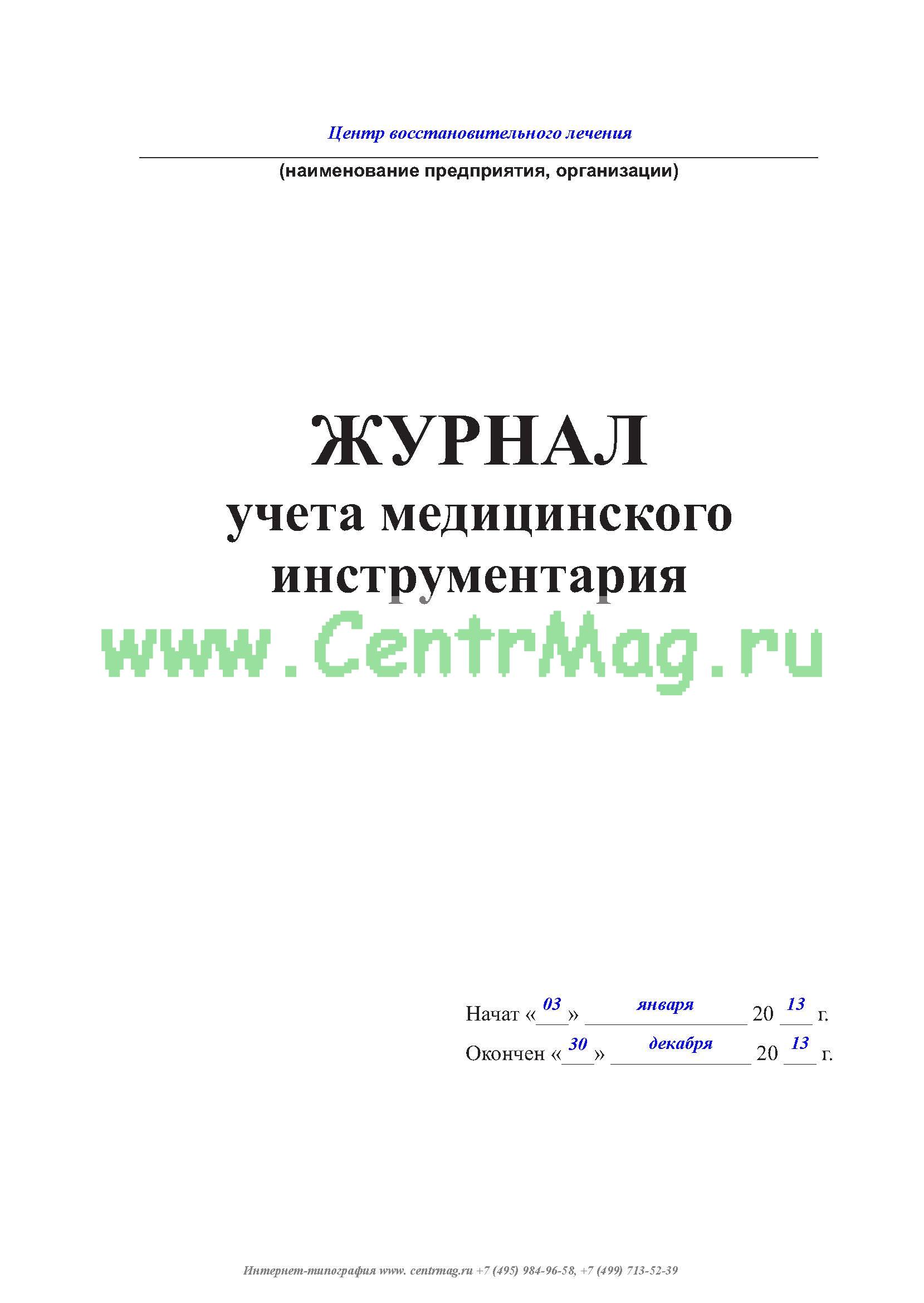 Для учета медицинского инструментария в медицинских учреждениях ведут специальный журнал.
