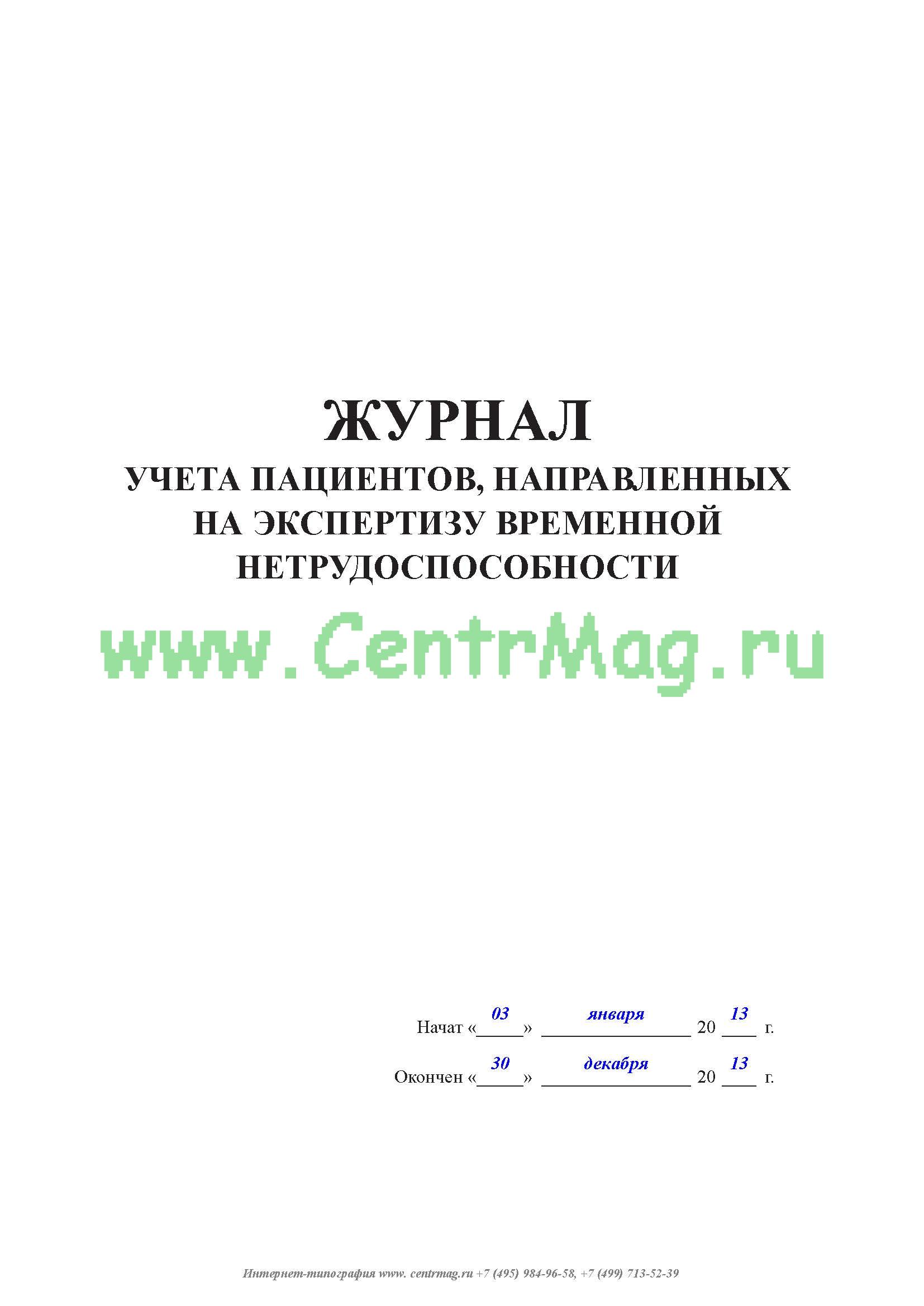 Для учета пациентов, направленных на экспертизу временной нетрудоспособности, ведут журнал учета пациентов, направленных на экспертизу временной нетрудоспособности.