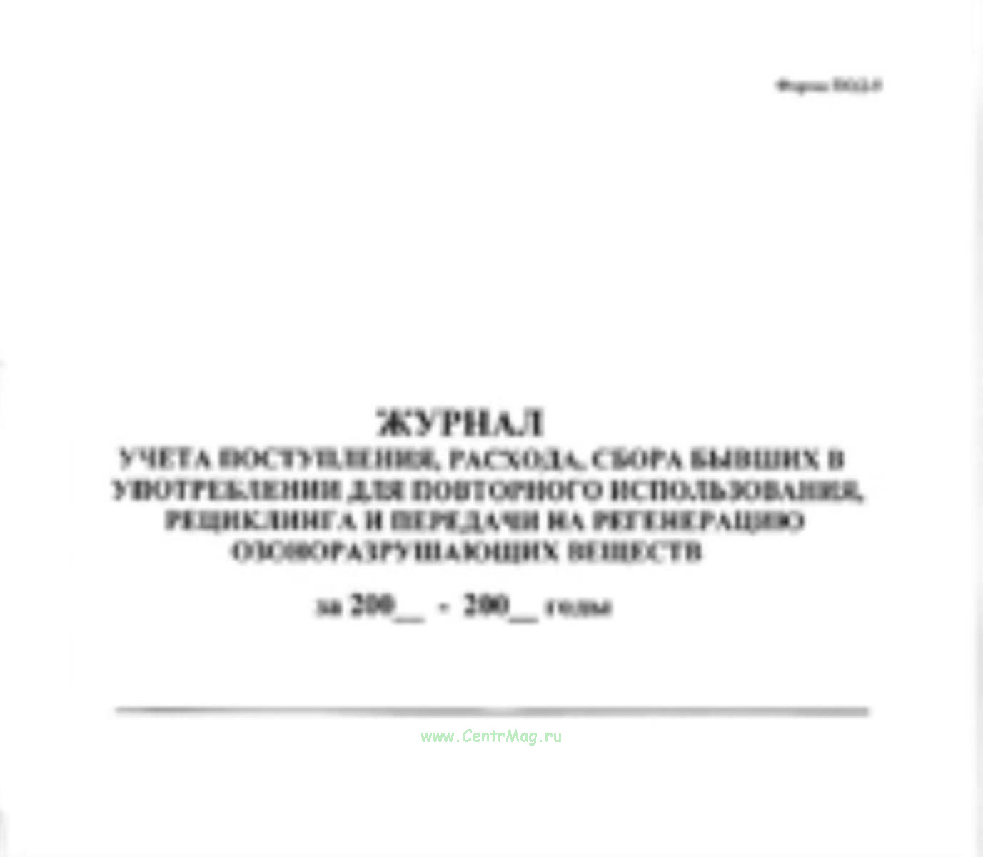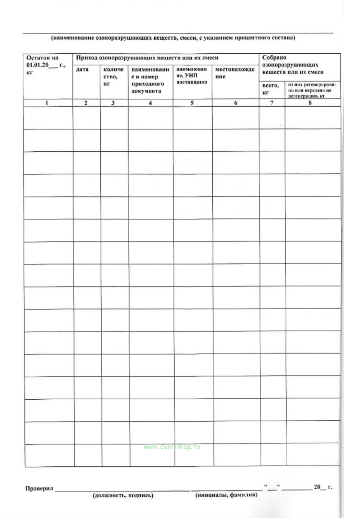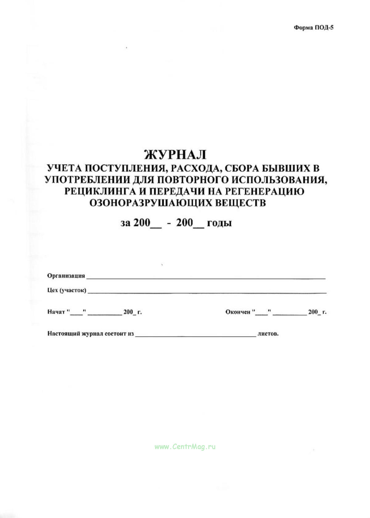Журнал учета поступления, расхода, сбора бывших в употреблении для повторного использования, рециклинга и передачи на регенерацию озоноразрушающих веществ (Форма ПОД-5)