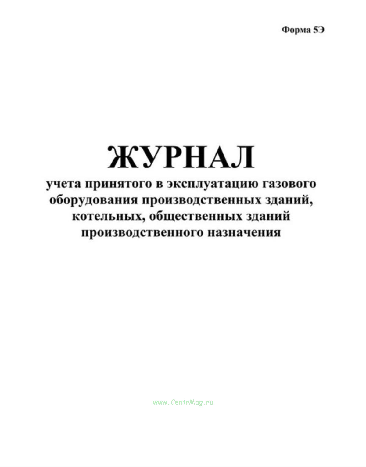 Форма журнала учета принятого в эксплуатацию газового оборудования производственных зданий, котельных, общественных зданий производственного назначения (форма 5Э) соответствует документу Техническая эксплуатация газораспределительных систем. Примерные формы эксплуатационной документации. ОСТ 153-39.3-053-2003, который утратил силу.