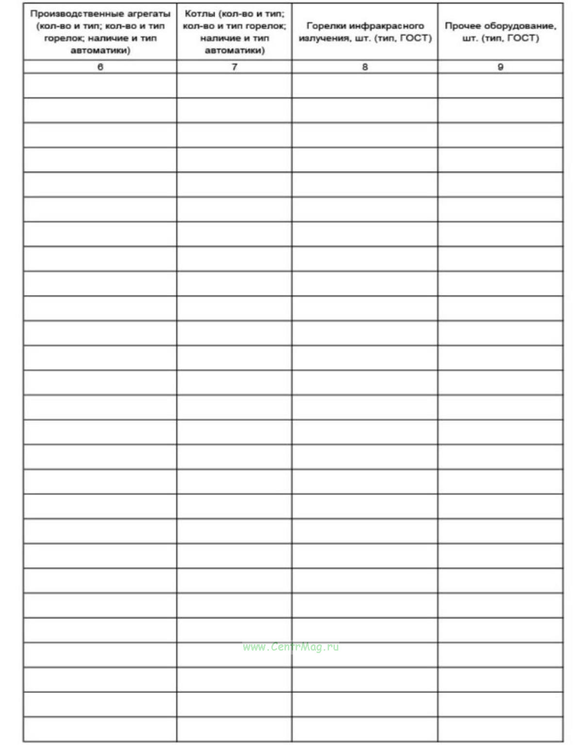 6 Производственные агрегаты (кол-во и тип; кол-во и тип горелок; наличие и тип автоматики)