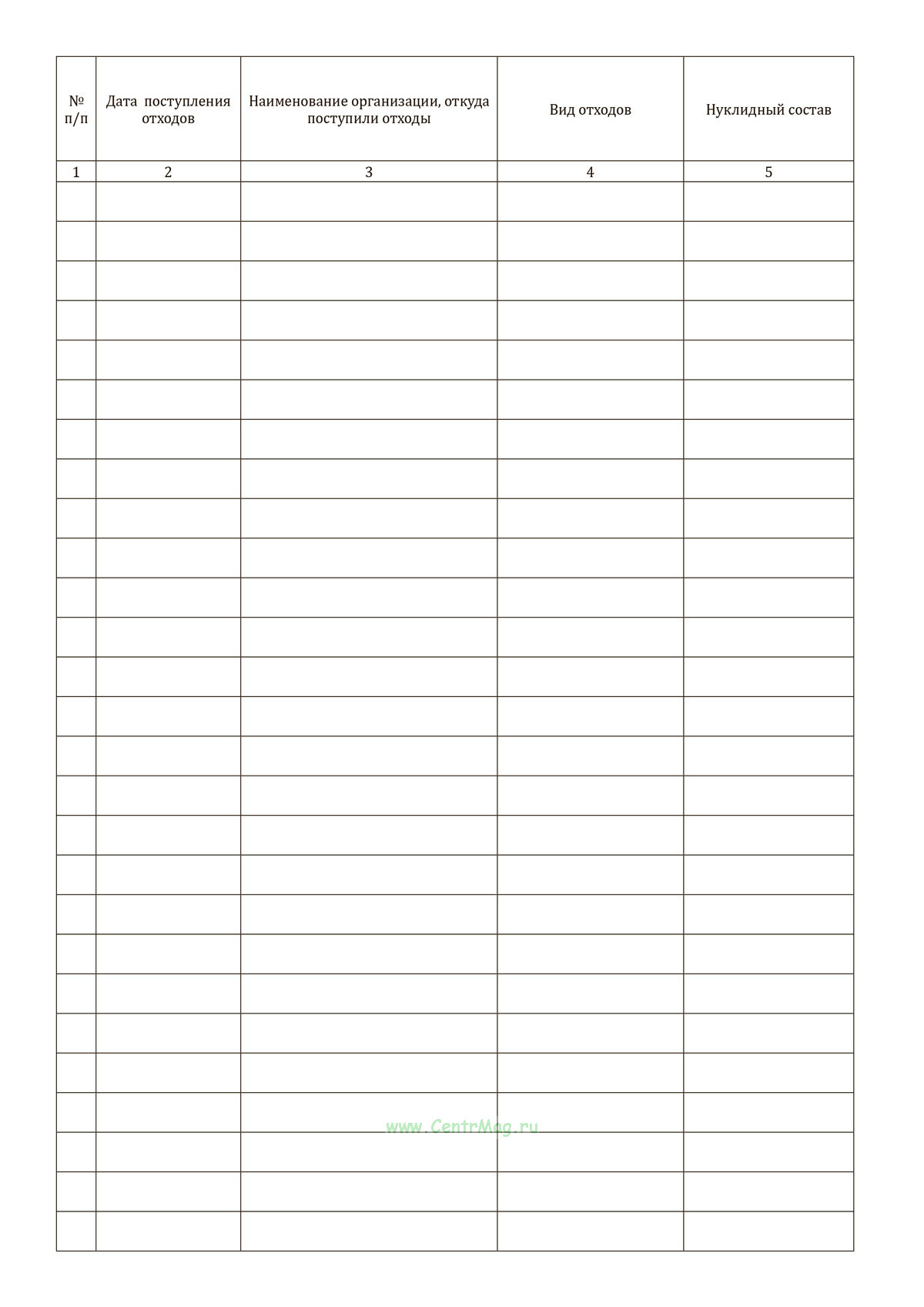 Журнал учета радиоактивных отходов, поступивших на захоронение имеет графы:
