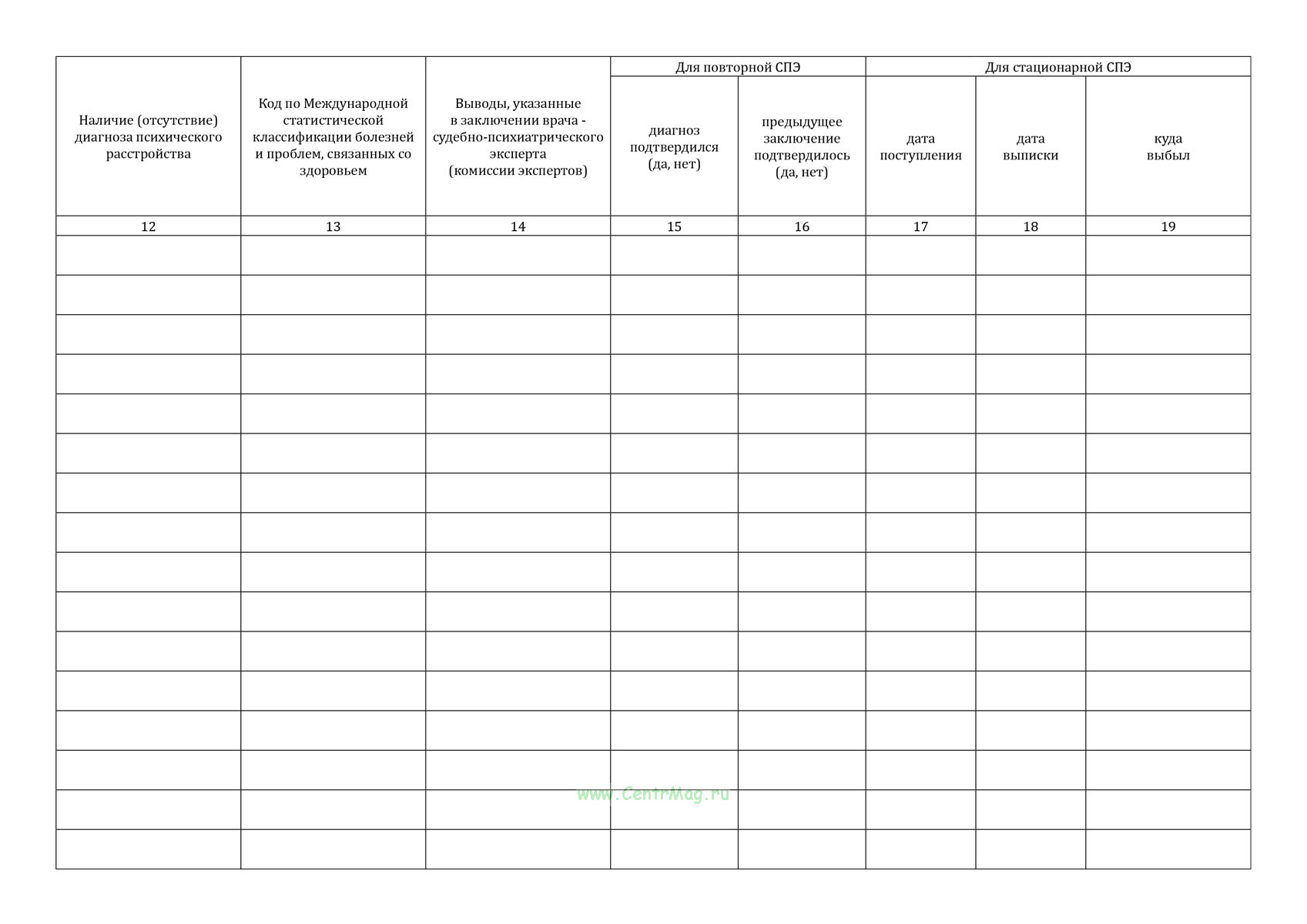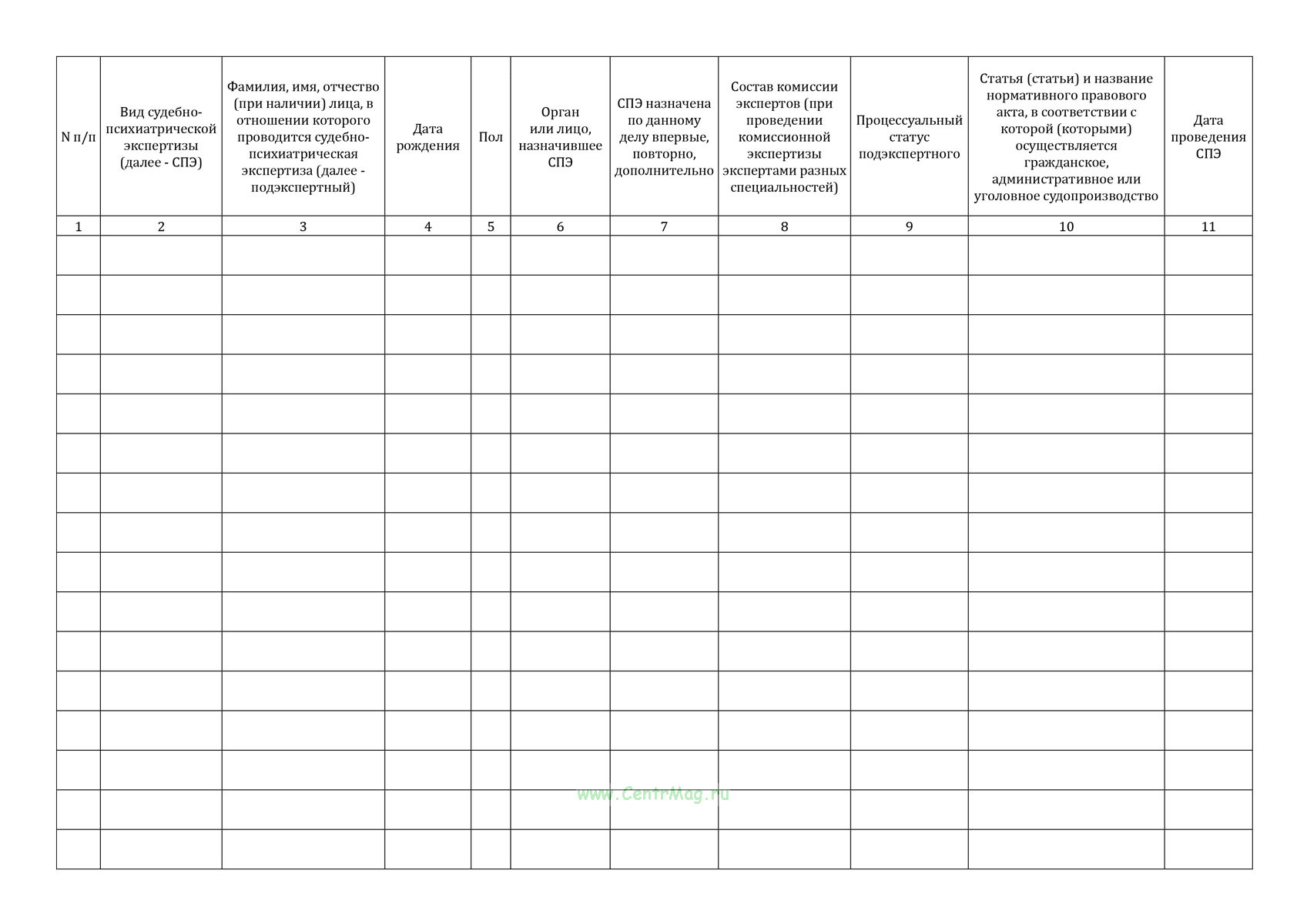 Журнал учета судебно-психиатрических экспертиз (Форма 105/у) имеет графы: