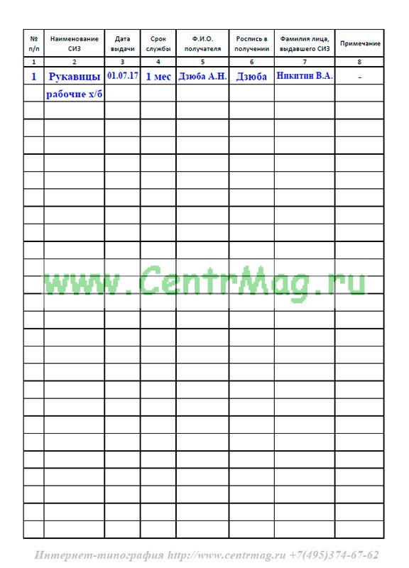 Некоторые инженеры по ОТ вместо журнала выдачи СИЗ предпочитают вести журнал учета выдачи средств индивидуальной защиты (СИЗ), что не меняет сути вопроса.