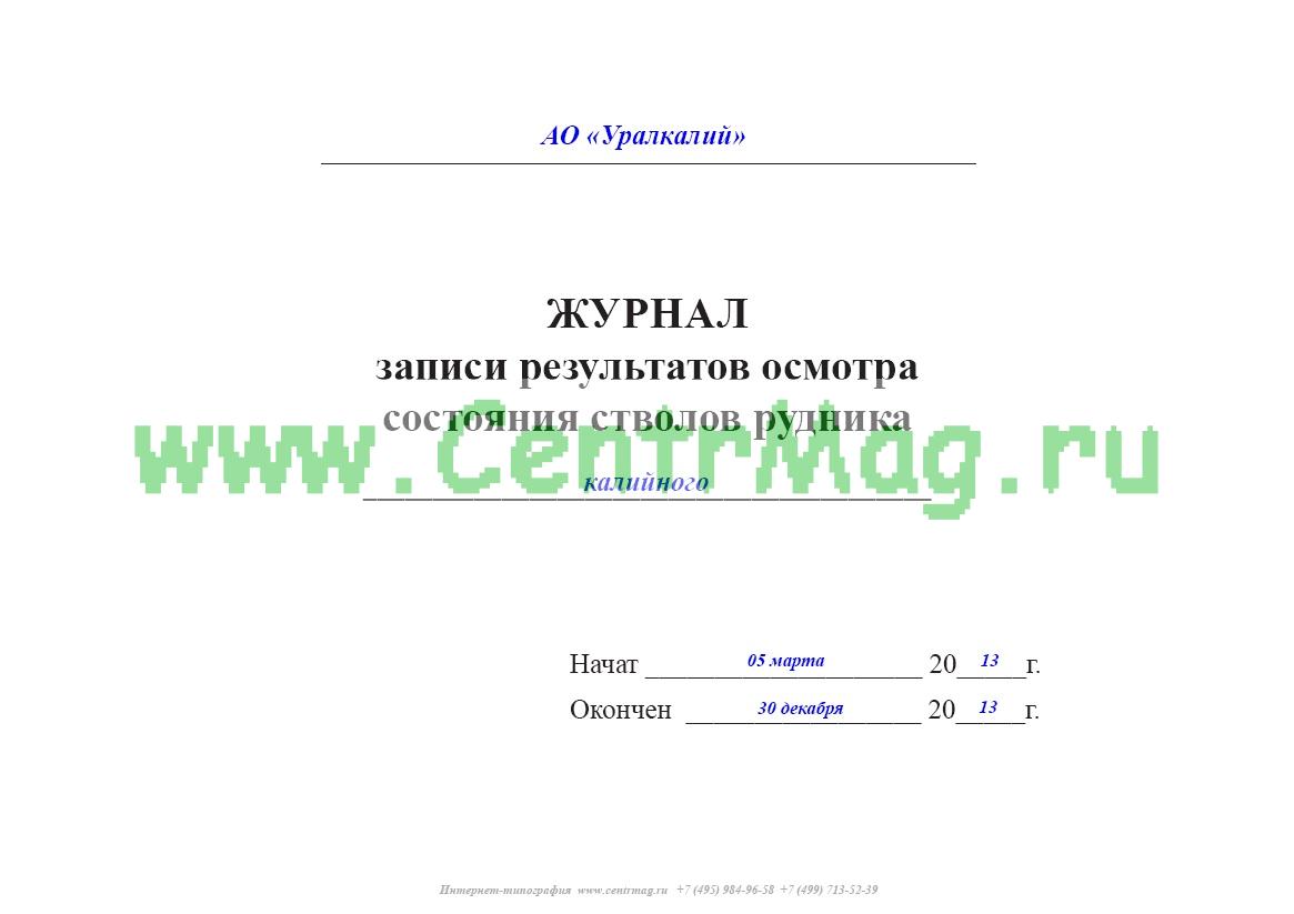 Журнал записи результатов осмотра состояния стволов рудника имеет графы: