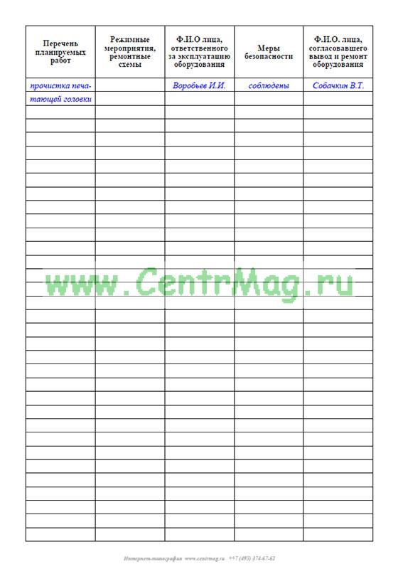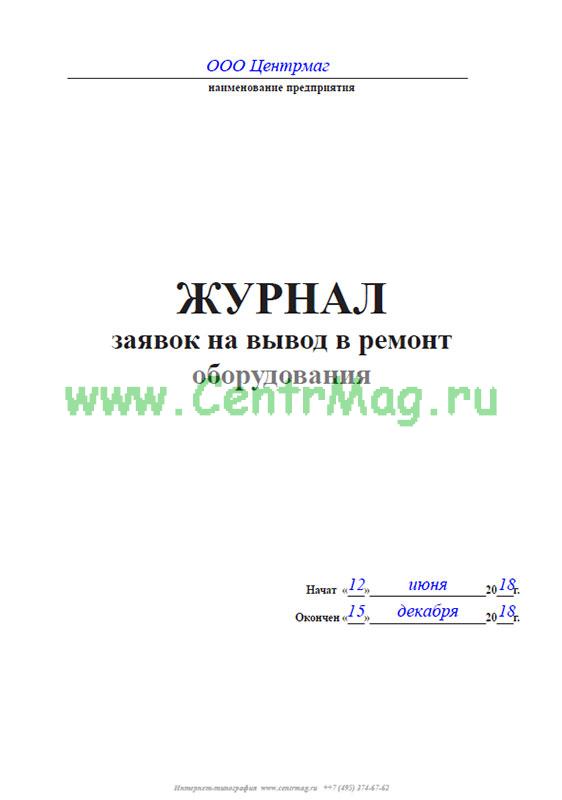Журнал заявок на вывод в ремонт оборудования содержит графы: