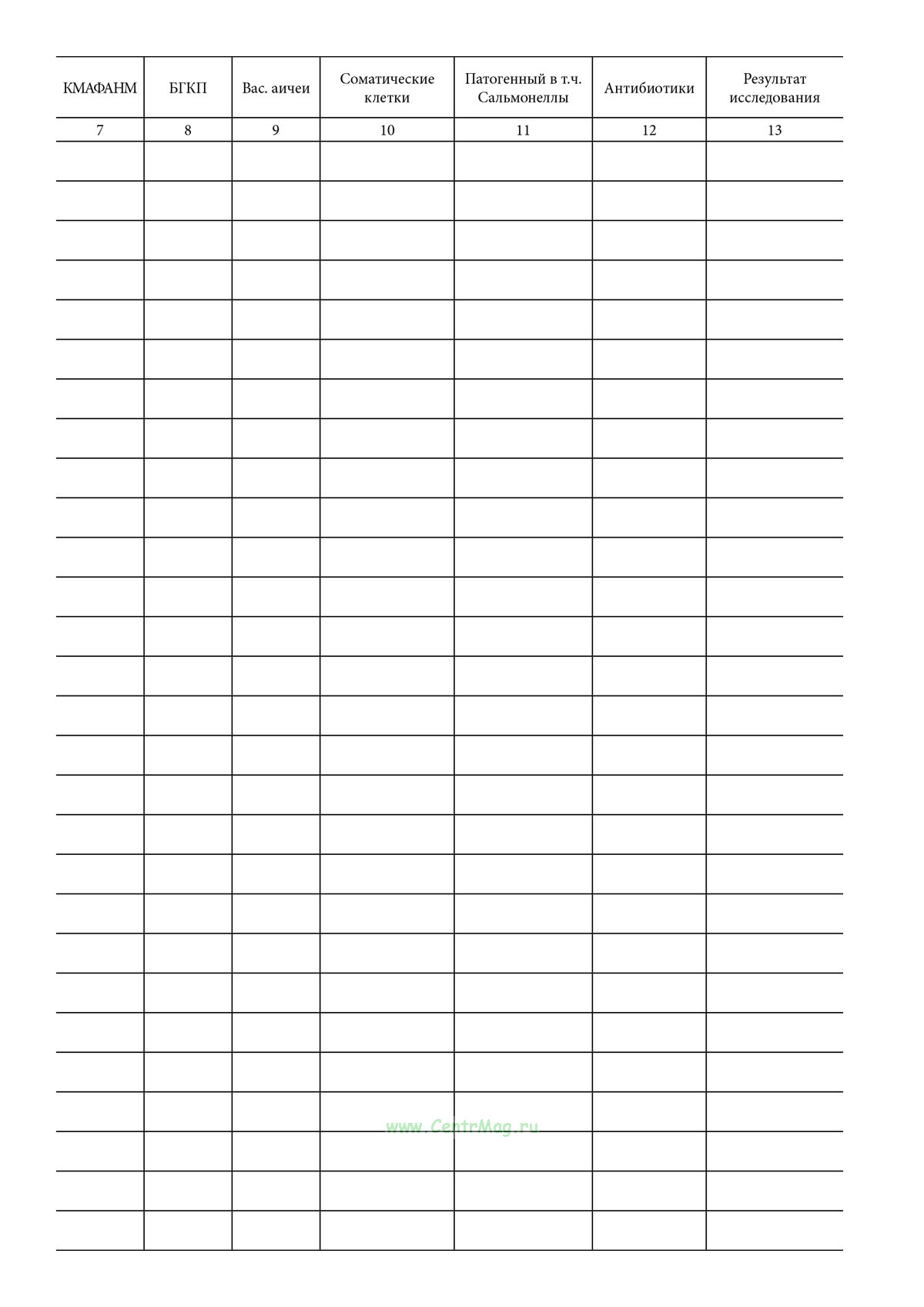 Журнал бактериологических исследований молока имеет графы: